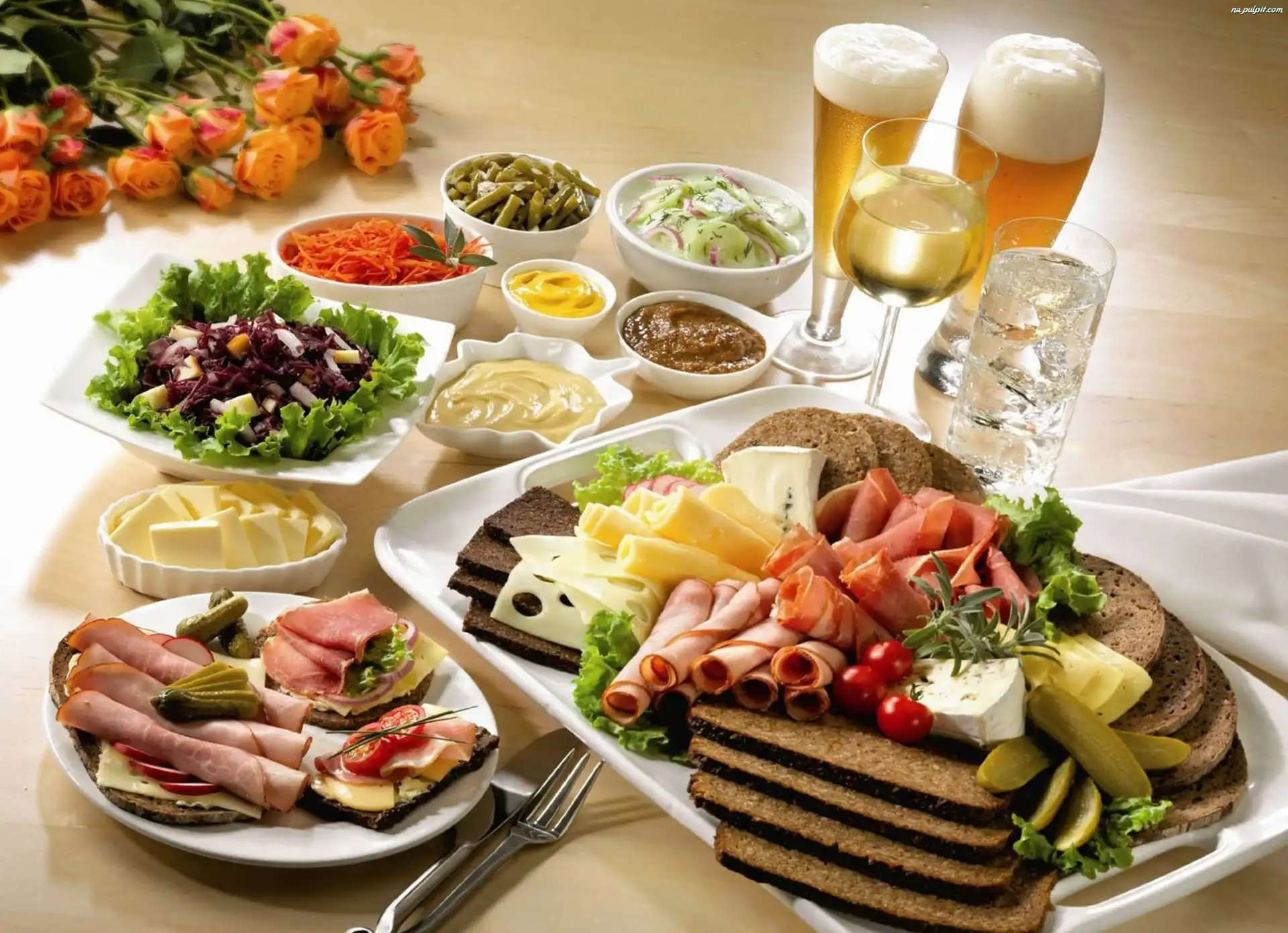 Kolacja, Jedzenie, Talerze, Piwo Na Pulpit