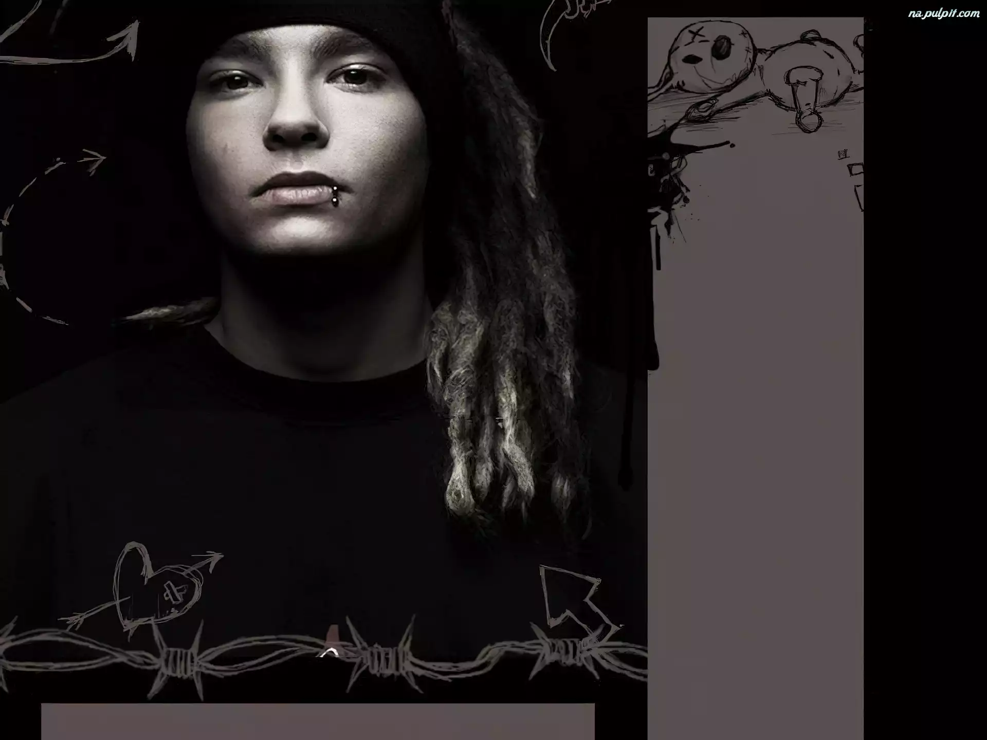 kolczyk, Tokio Hotel, włosy Na Pulpit