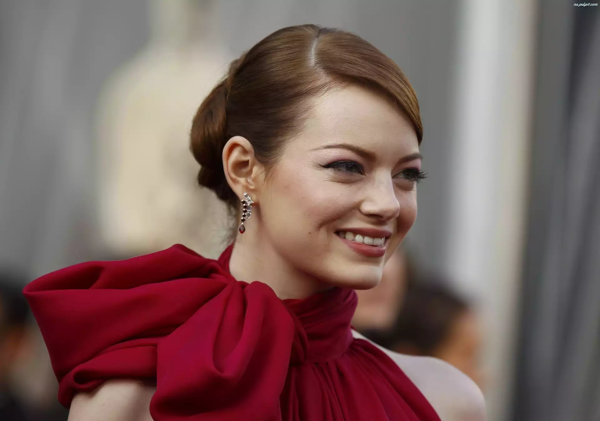 Kolczyk, Emma Stone, Kobieta, Uśmiechnięta, Makijaż