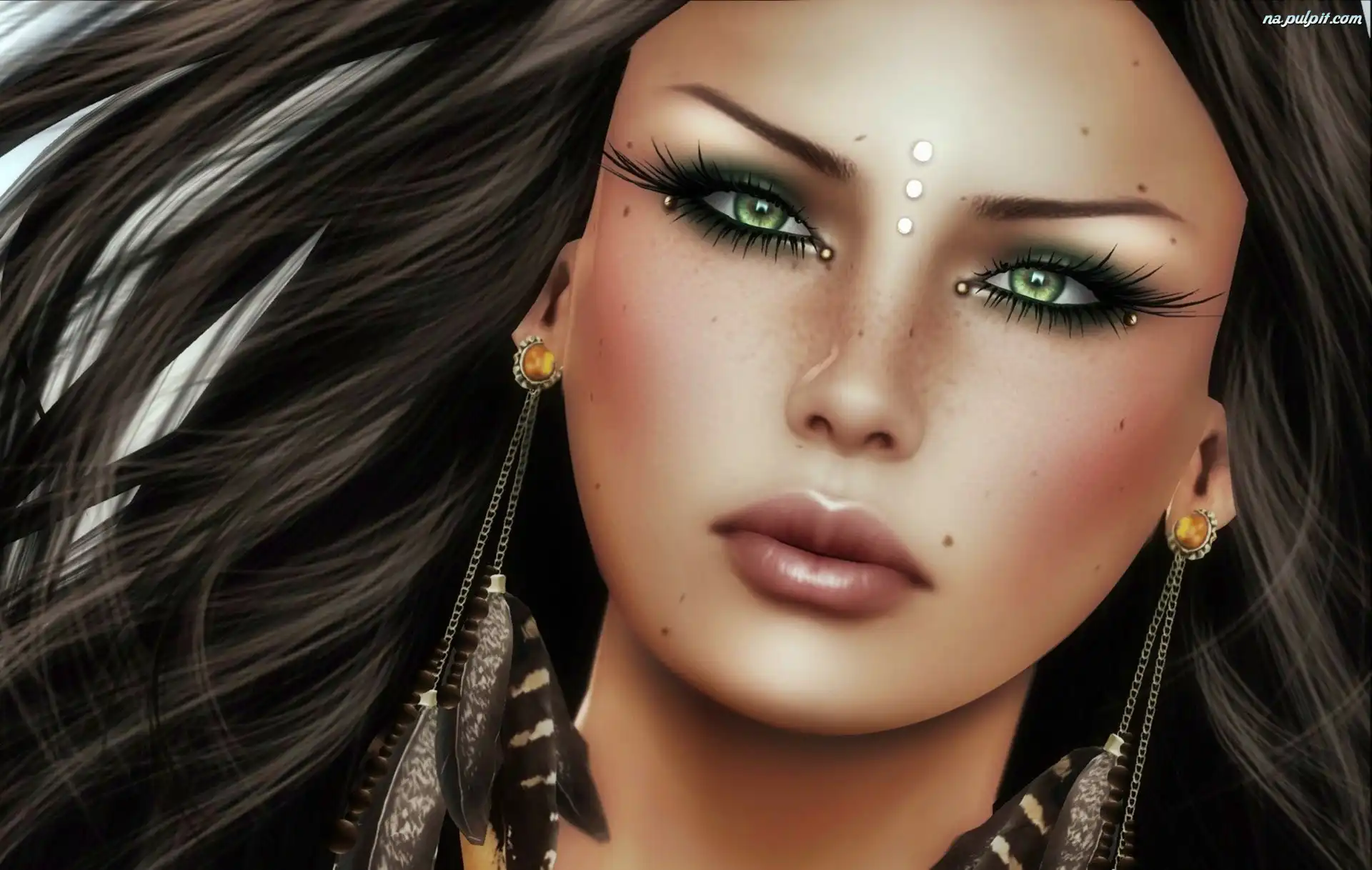 Kolczyki, Zielonooka, Piękna, Kobieta