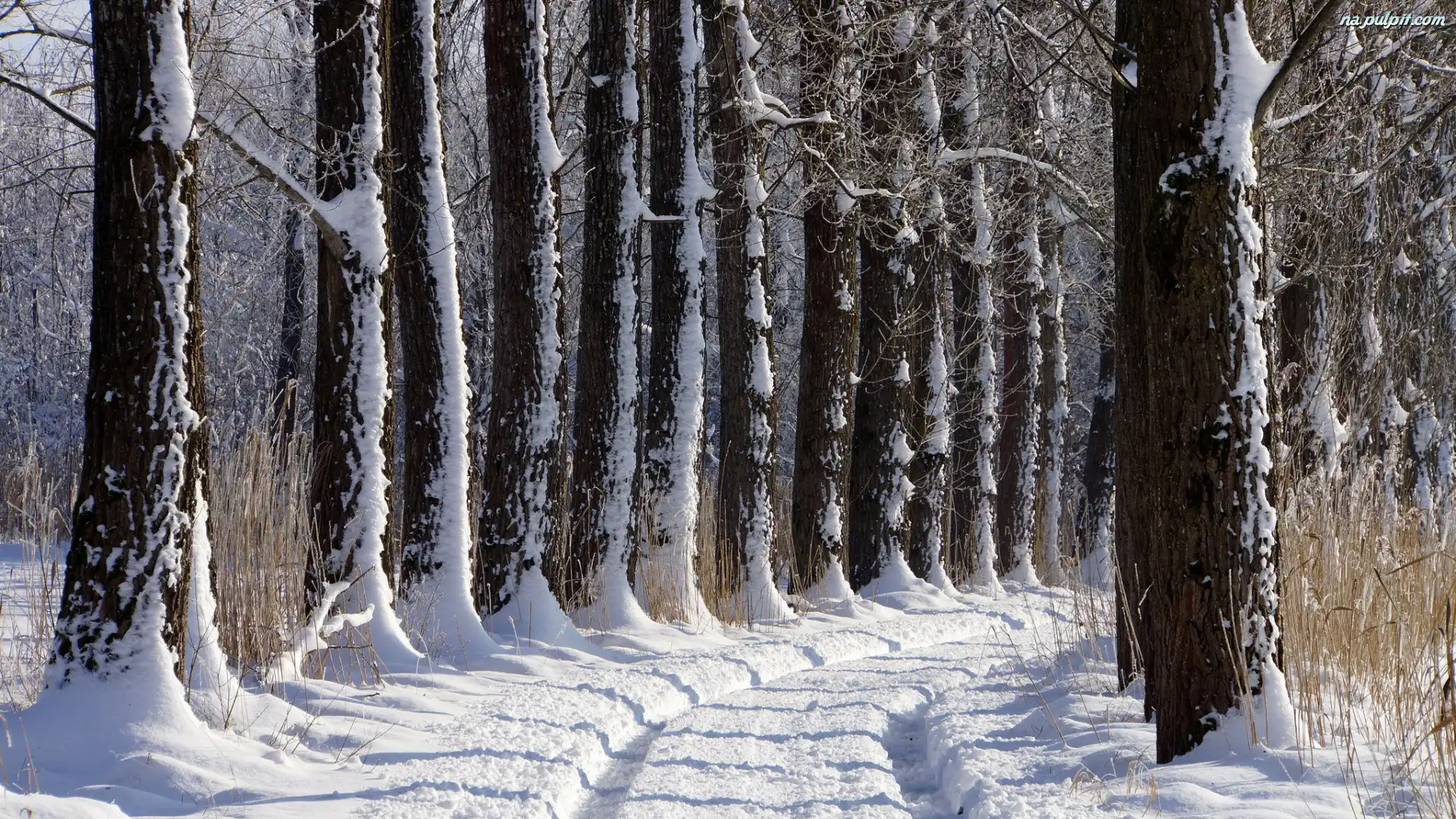 Koleiny, Drzewa, Droga, Zima, Åšnieg Na Pulpit