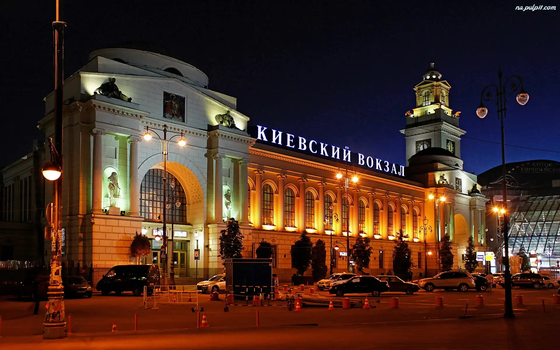 Kolejowego, Budynek, Nocą, Kijów, Dworca Na Pulpit