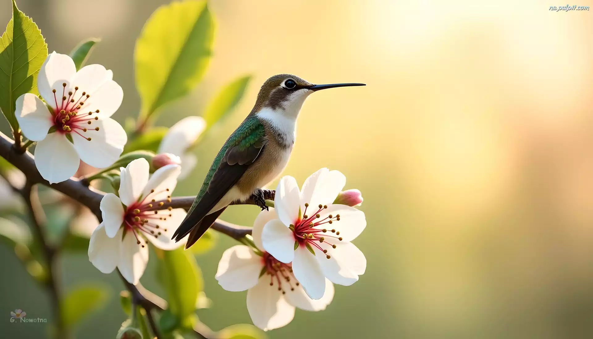 Grafika, Koliber, Ptak, Kwiaty, Białe Na Pulpit