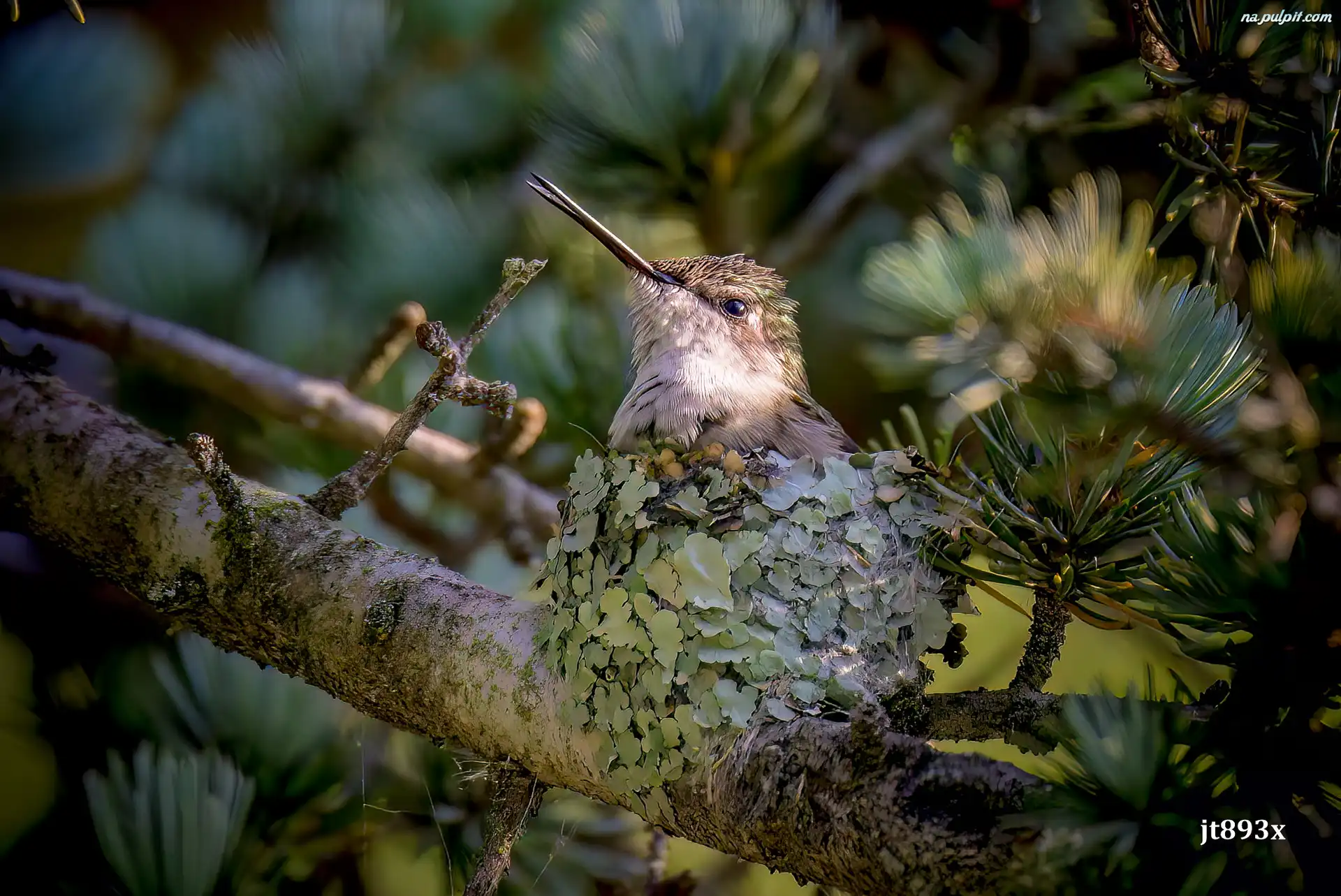 Gniazdo, Koliber, Samica, Koliberek rubinobrody, Ptak, Drzewo Na Pulpit