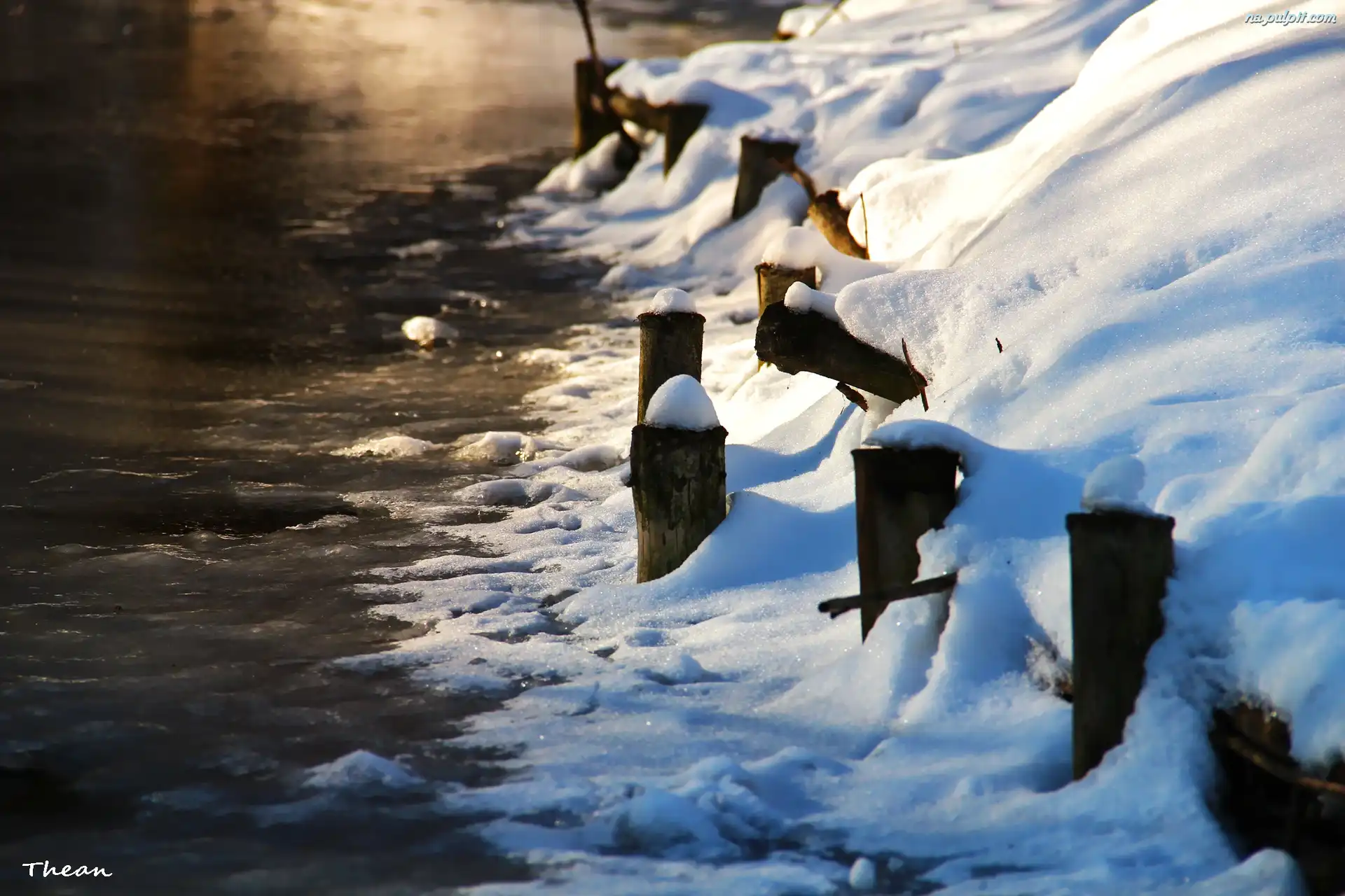 Kołki, Jezioro, Brzeg, Śnieg, Drewniane Na Pulpit