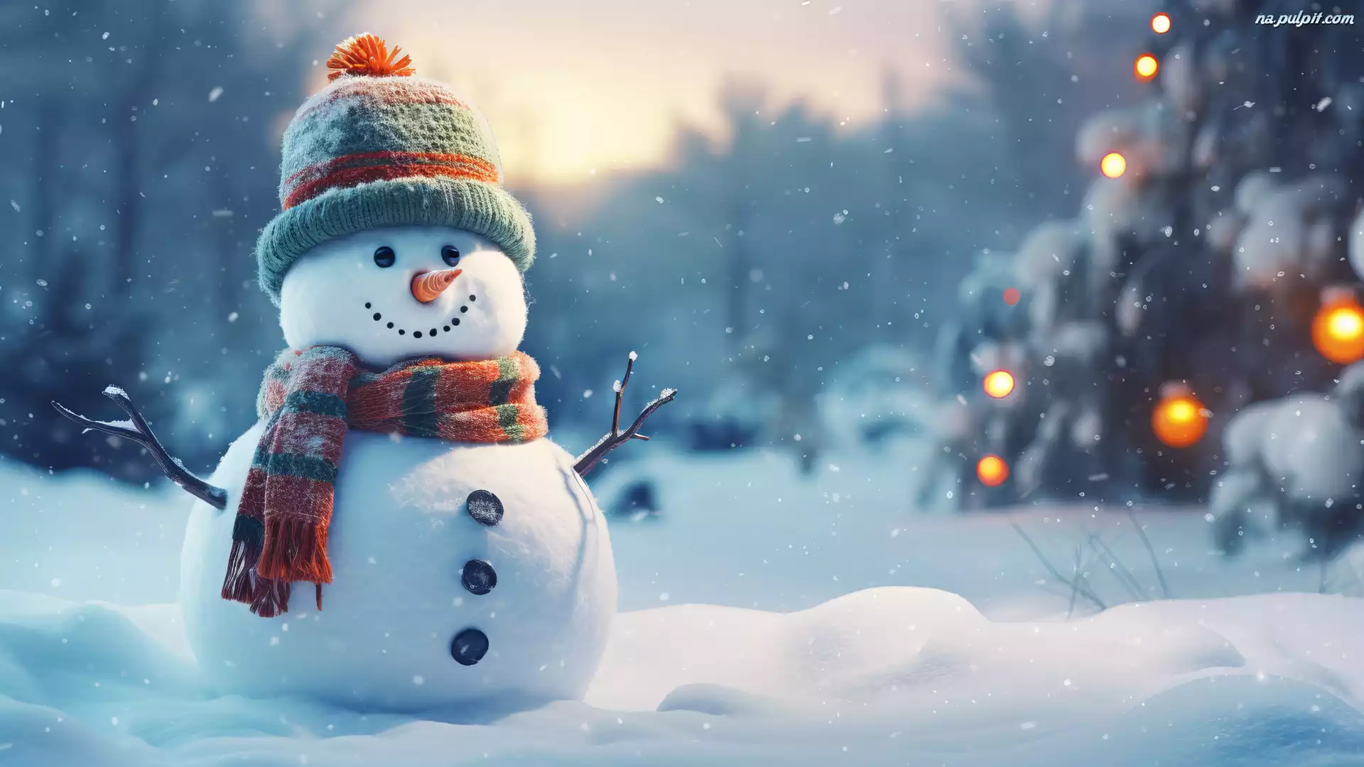 Czapka, Zima, Bałwan, Kolorowa, Śnieg, Szalik Na Pulpit