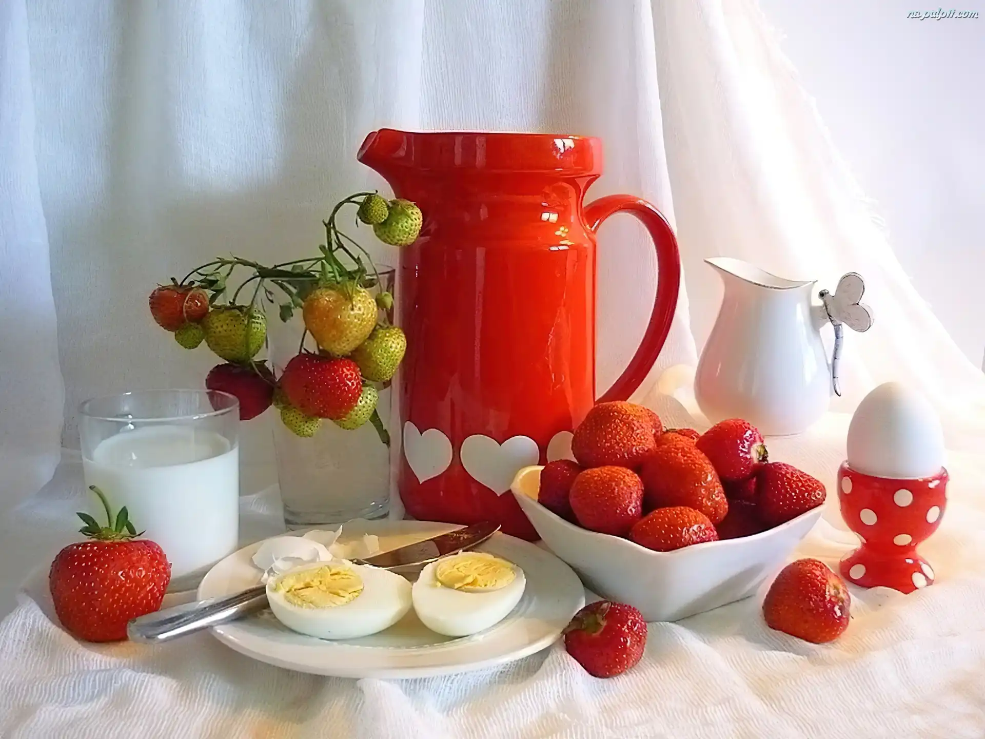 Åšniadanie, Truskawki, Porcelana, Kolorowa, Jajka Na Pulpit