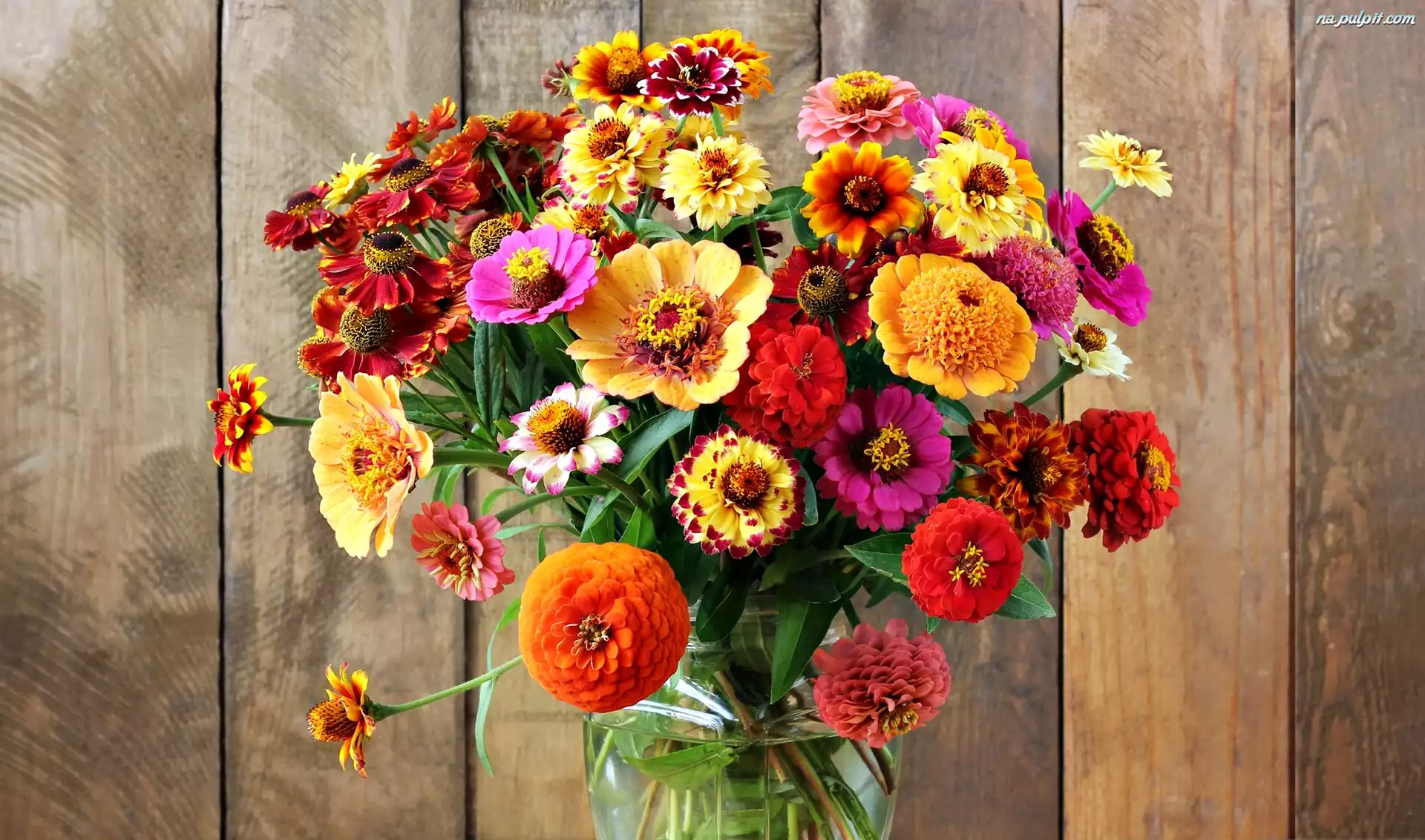 Kolorowe, Dzielżany, Deski, Kwiaty, Bukiet, Cynie Na Pulpit