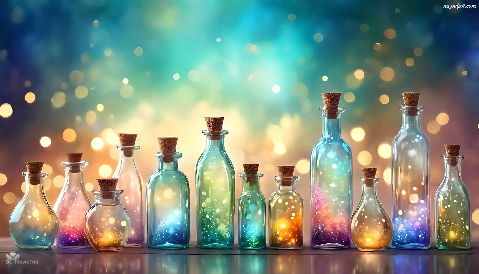 Grafika, Kolorowe, Butelki, Kompozycja, Korki Na Pulpit