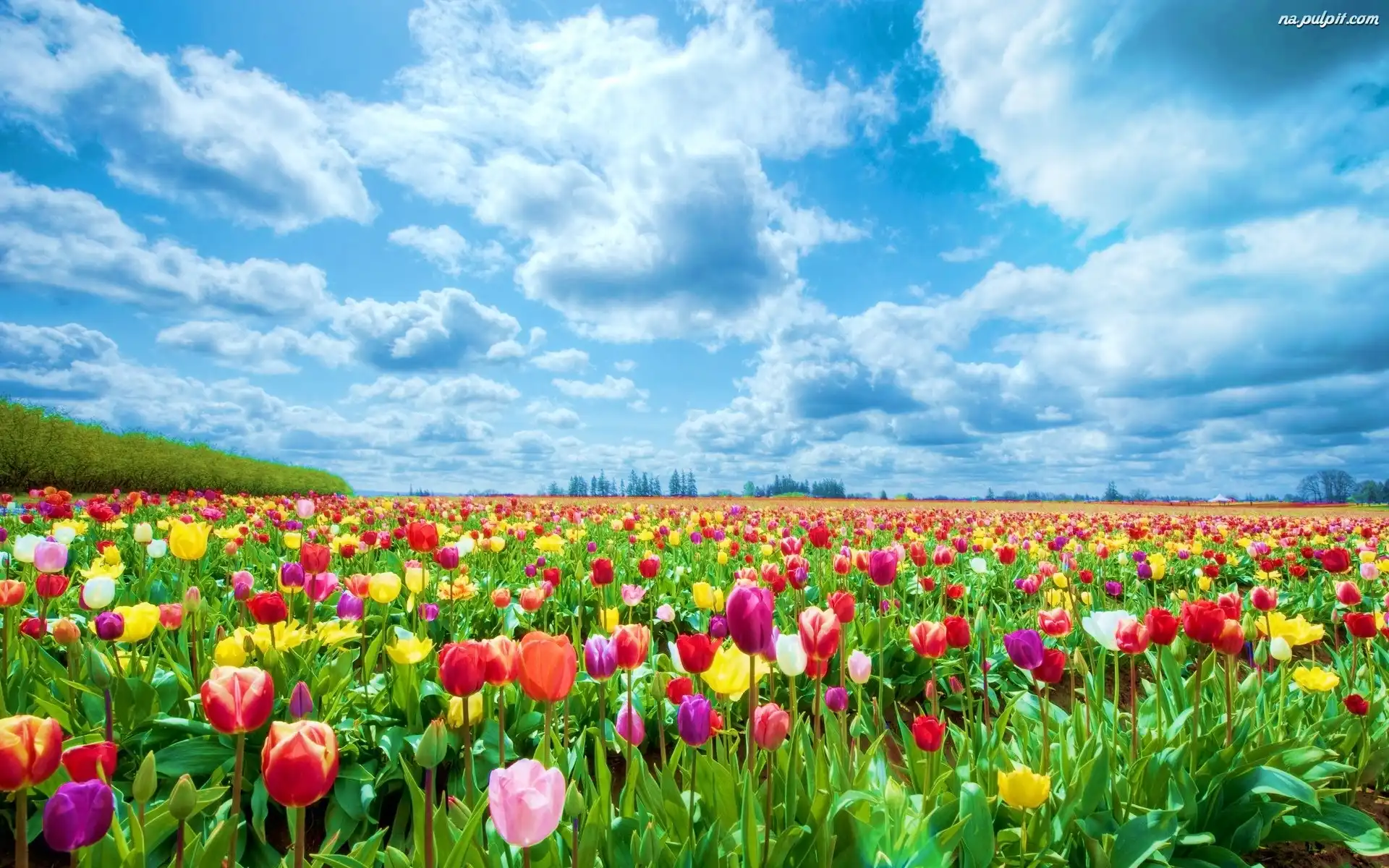 Chmury, Kolorowe, Tulipany Na Pulpit