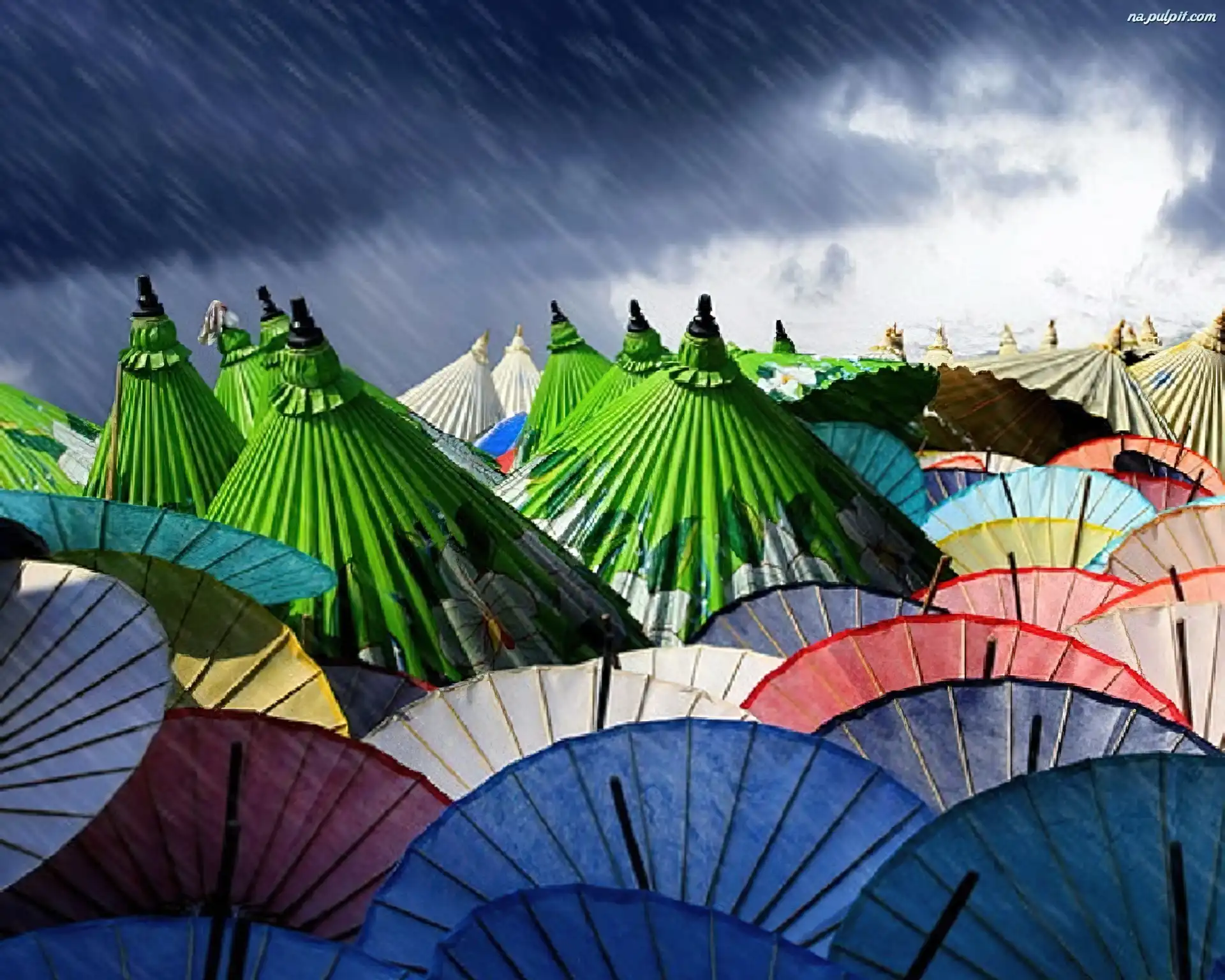 Parasolki, Kolorowe, Deszcz Na Pulpit