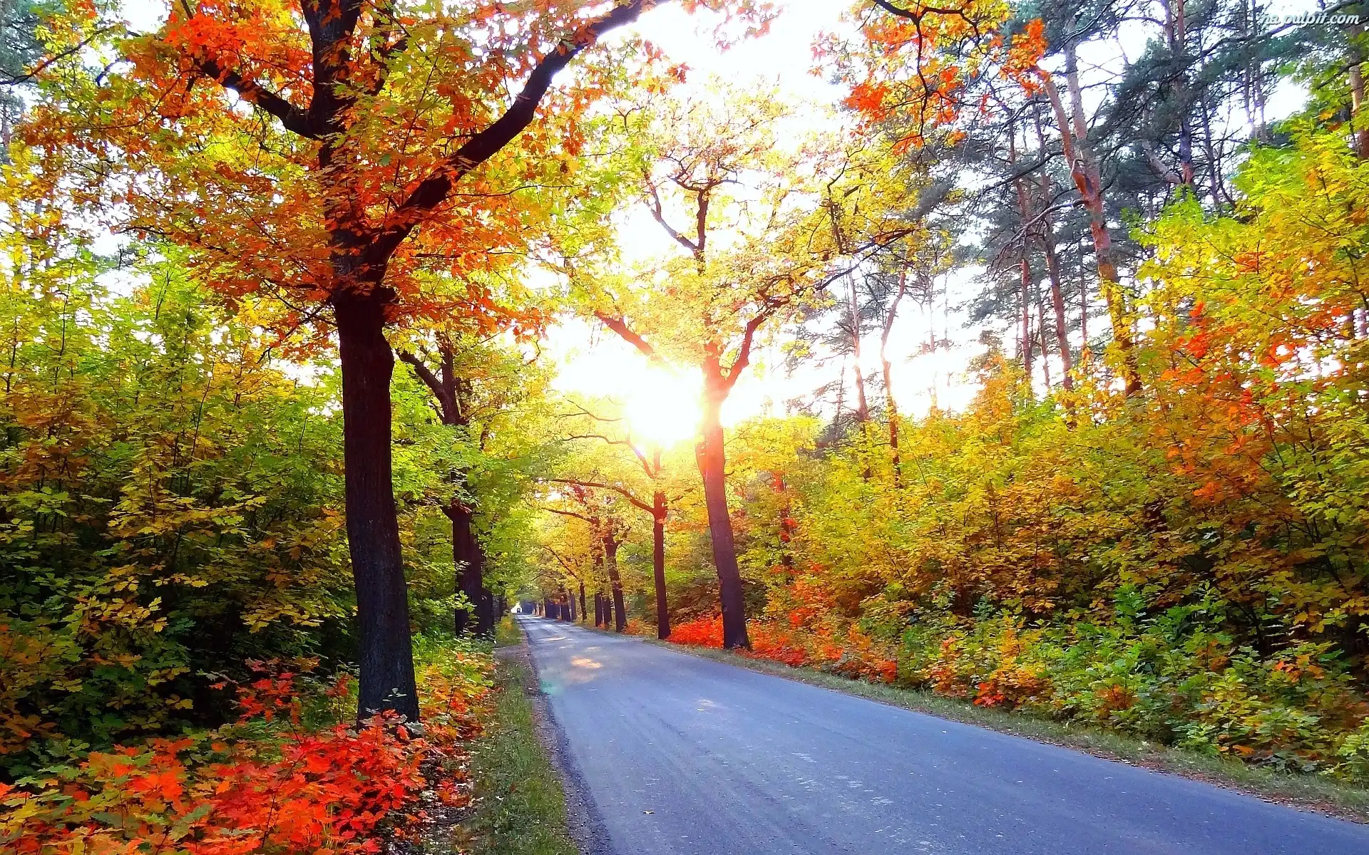 Kolorowe, Światło, Jesień, Drzewa, Droga, Krzewy Na Pulpit