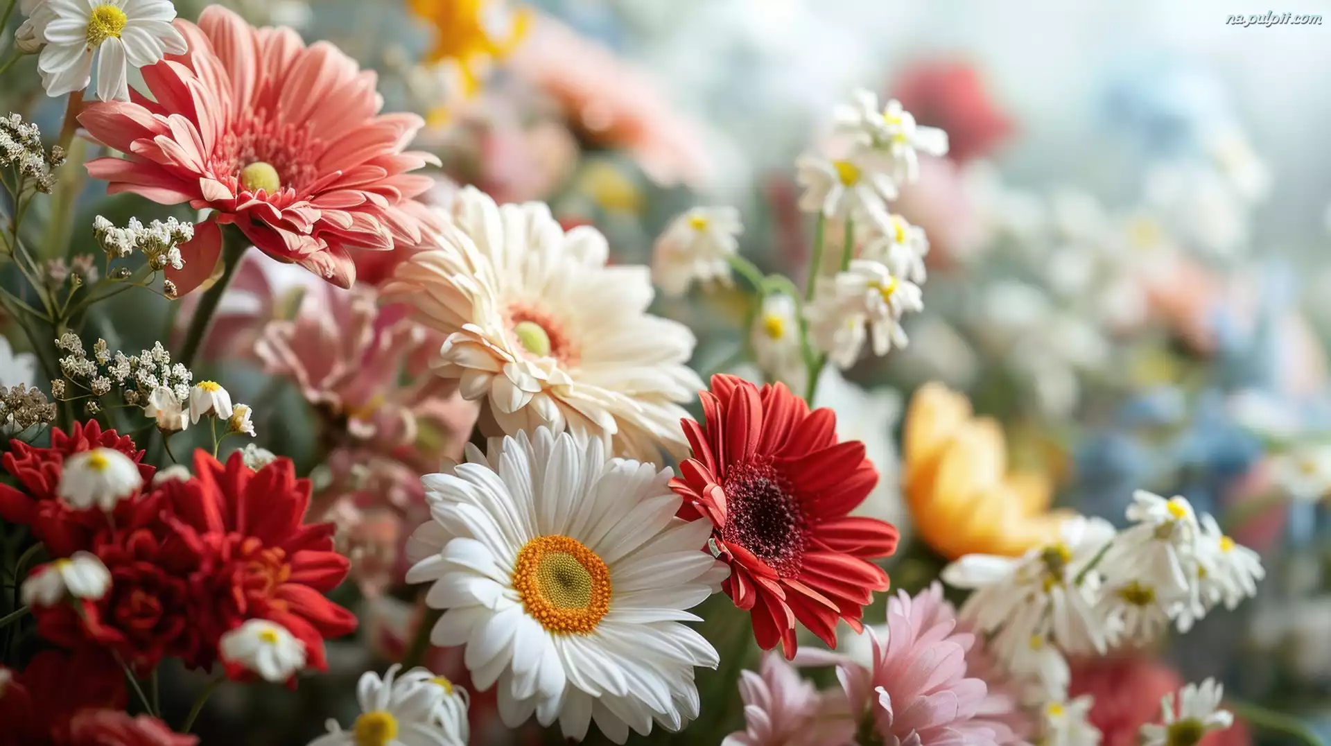 Rozmyte tło, Kwiaty, Kolorowe, Grafika, Gerbery Na Pulpit