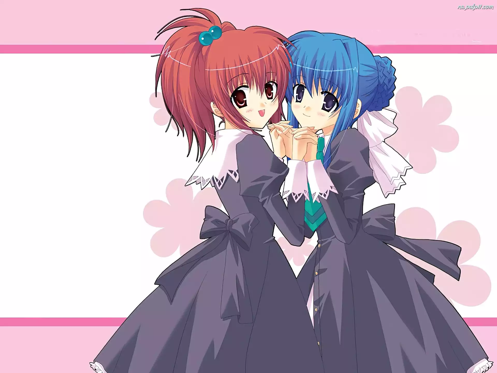 kolorowe włosy, Strawberry Panic, grafitowe suknie Na Pulpit