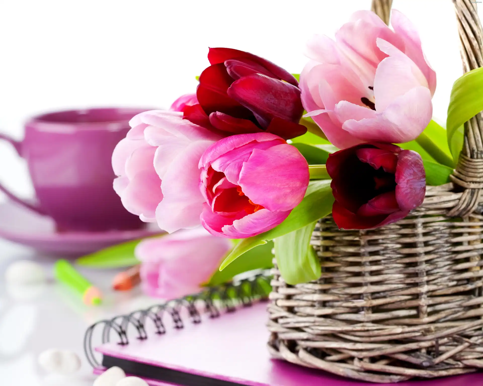 Kosz, Kolorowe, Tulipany Na Pulpit