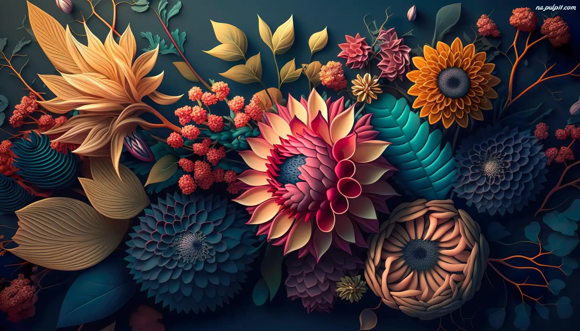 Egzotyczne, Kolorowe, Kwiaty, Grafika AI Na Pulpit