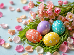 Wielkanoc, Listki, Kwiaty, Kolorowe, Jajka, Pisanki, Płatki