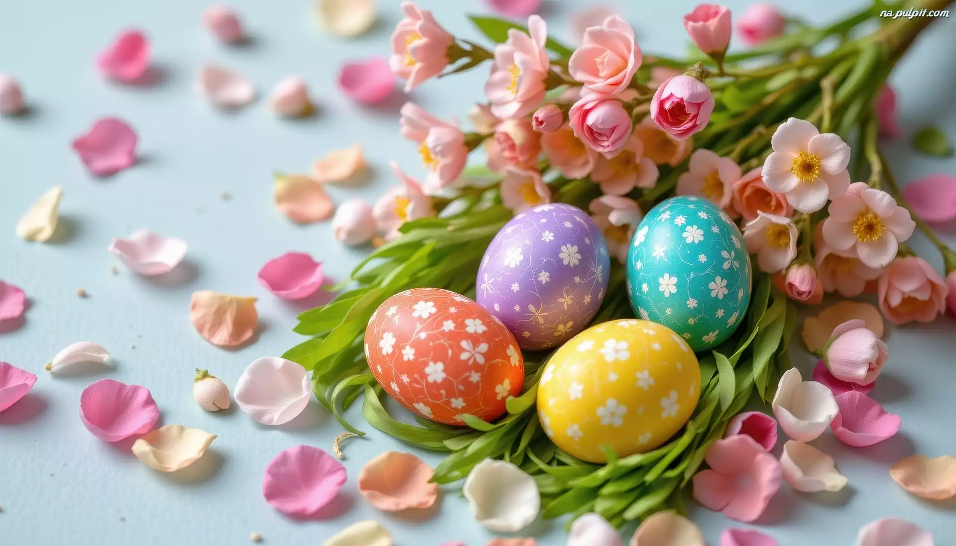 Wielkanoc, Listki, Kwiaty, Kolorowe, Jajka, Pisanki, Płatki Na Pulpit