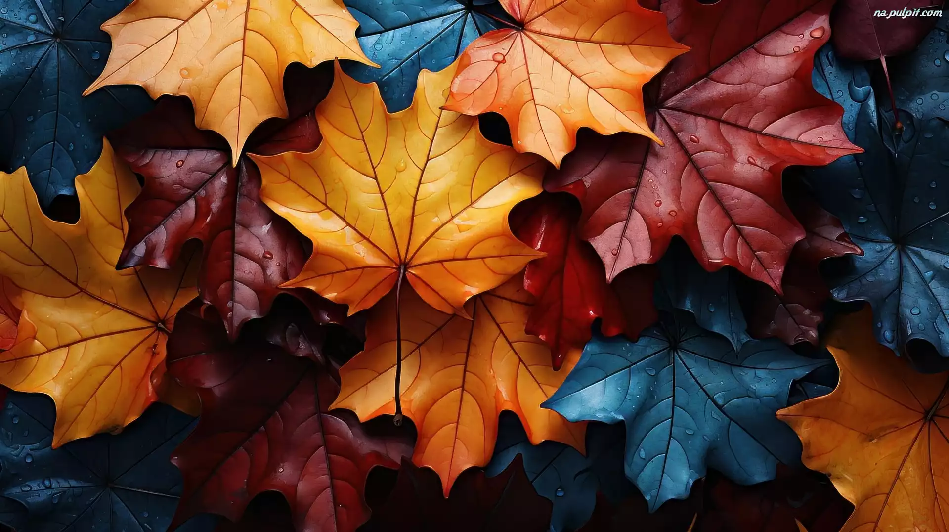 Jesień, Kolorowe, Liście, Grafika, Krople Na Pulpit