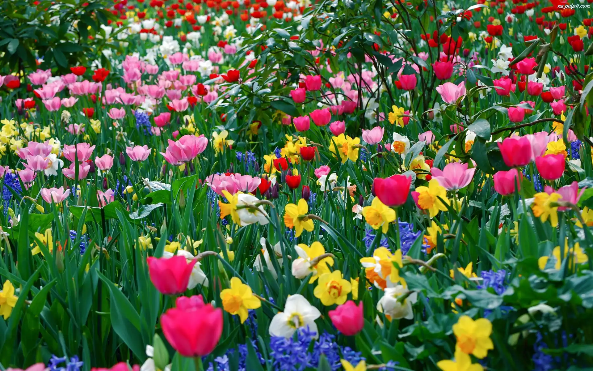 Żonkile, Kolorowe, Tulipany Na Pulpit