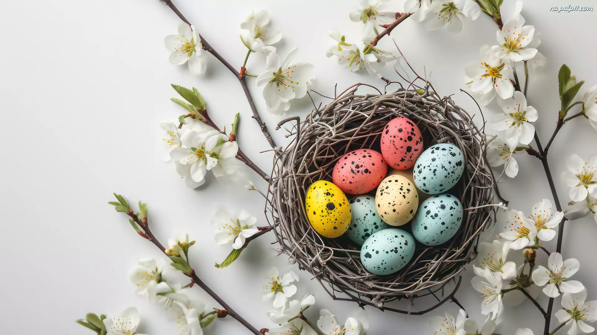 Jajka, Gniazdo, Pisanki, Wielkanoc, Gałązki, Kwitnące, Dekoracja, Kolorowe Na Pulpit