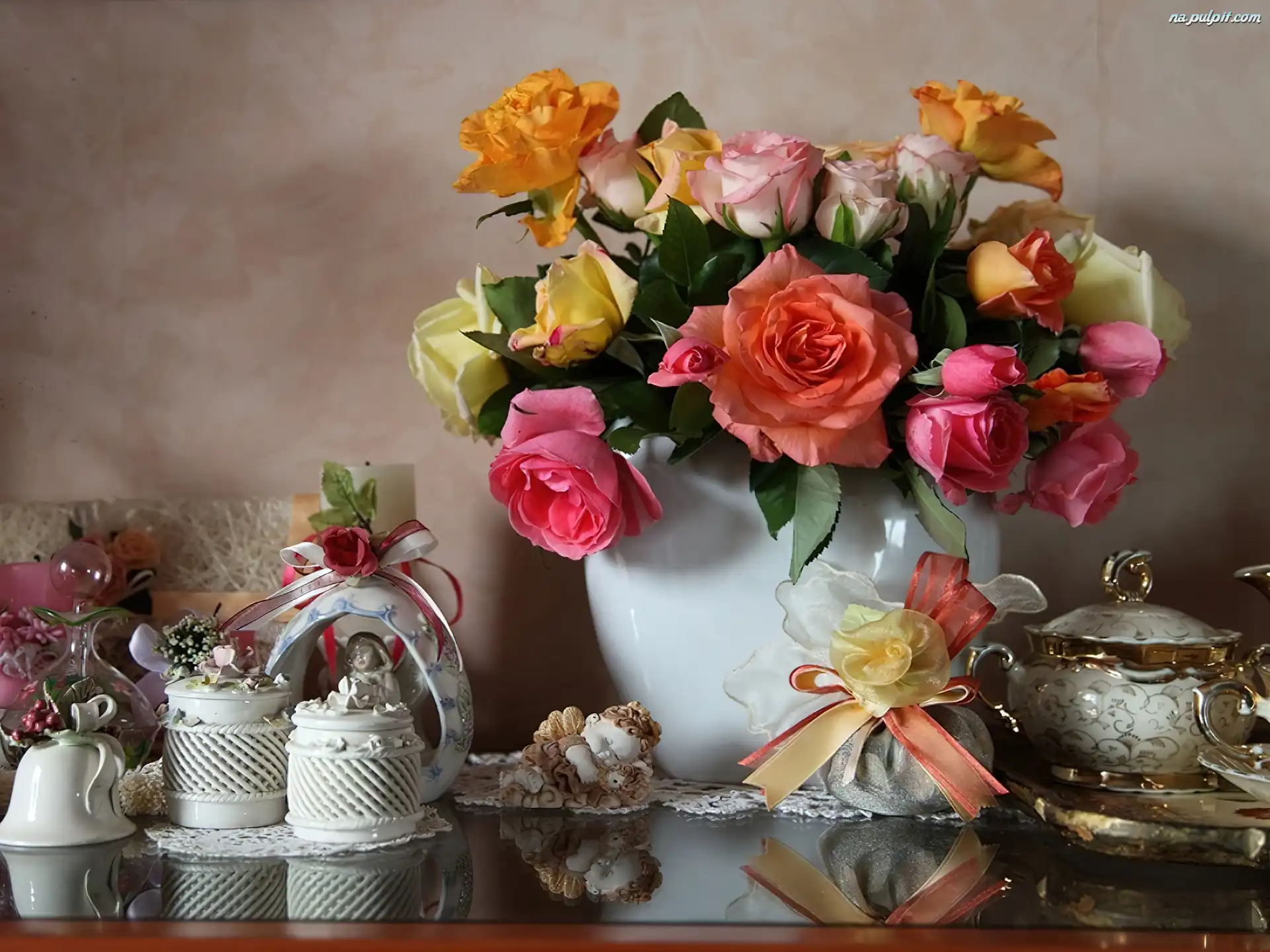 Porcelana, Kolorowe, Róże Na Pulpit