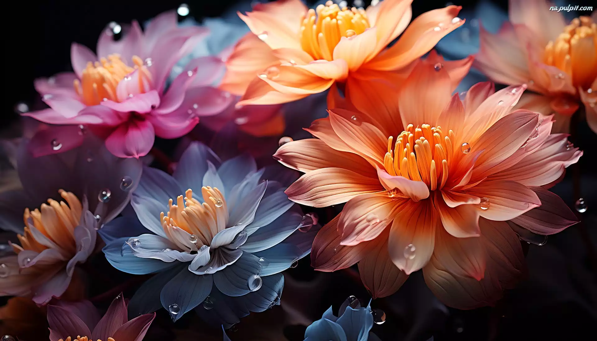 Krople, Kolorowe, Rozwinięte, Grafika, Kwiaty Na Pulpit