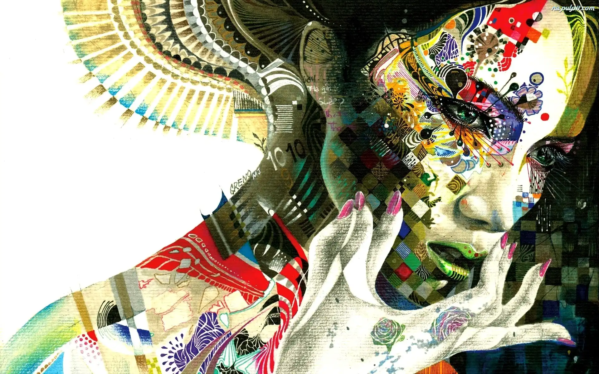 Kolorowe Tatuaże, Rysunek, Kobieta Na Pulpit