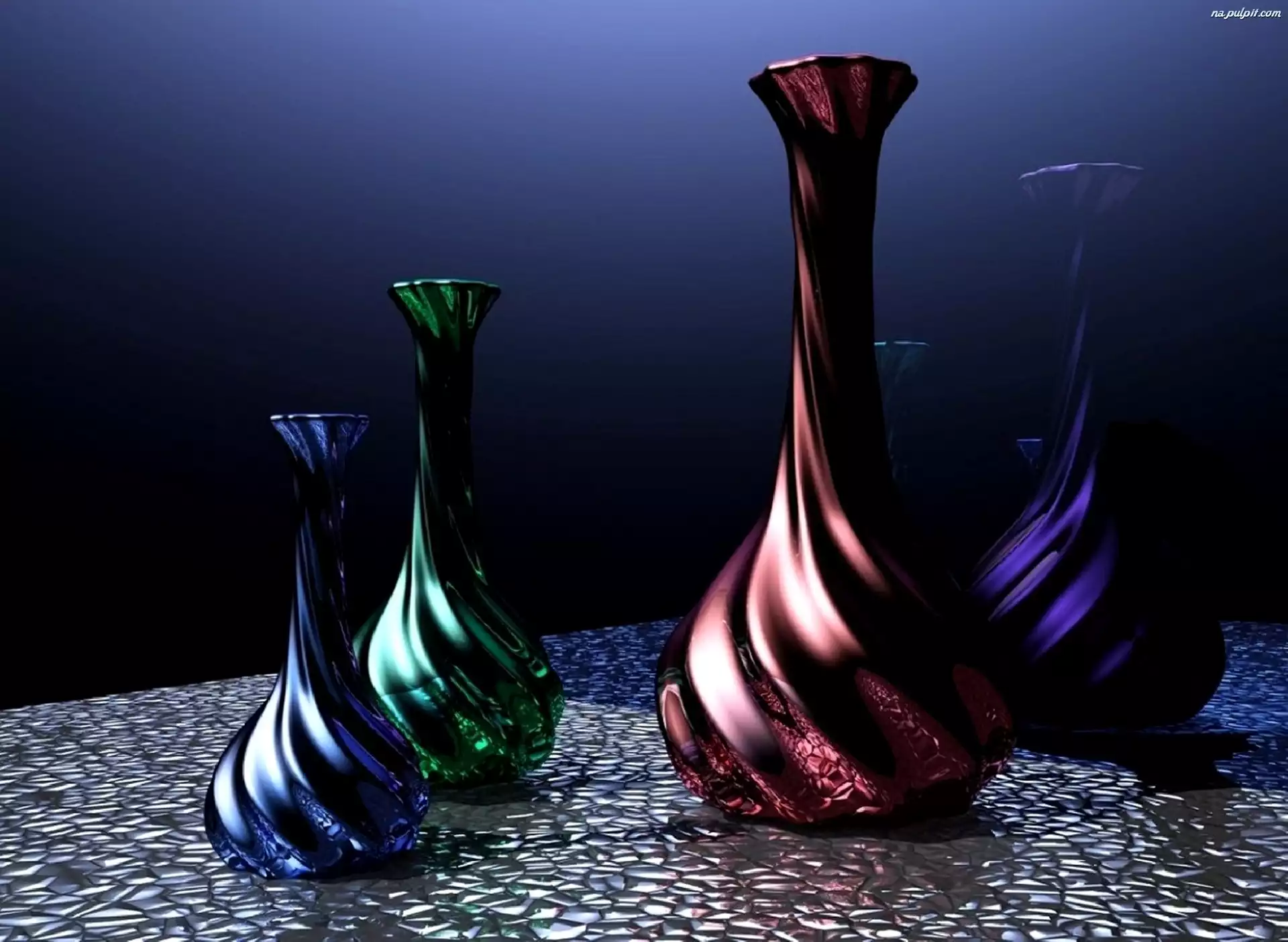 Dekoracja, Szklane, Kolorowe, Wazony Na Pulpit