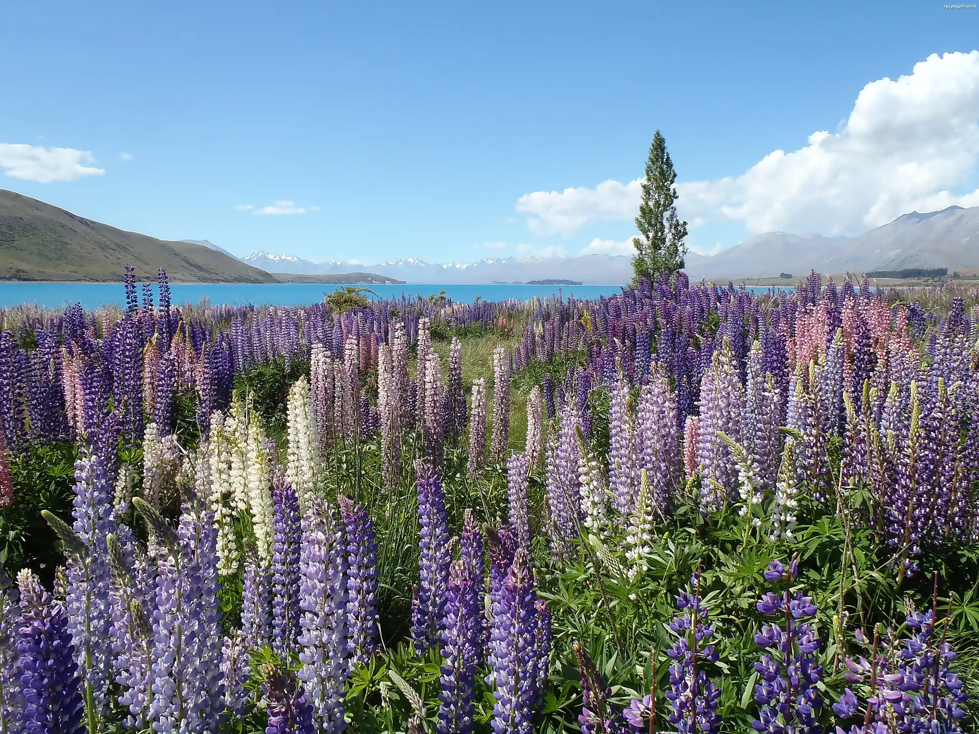Kolorowy, Góry, Lato, Łubin, Łąka, Jezioro