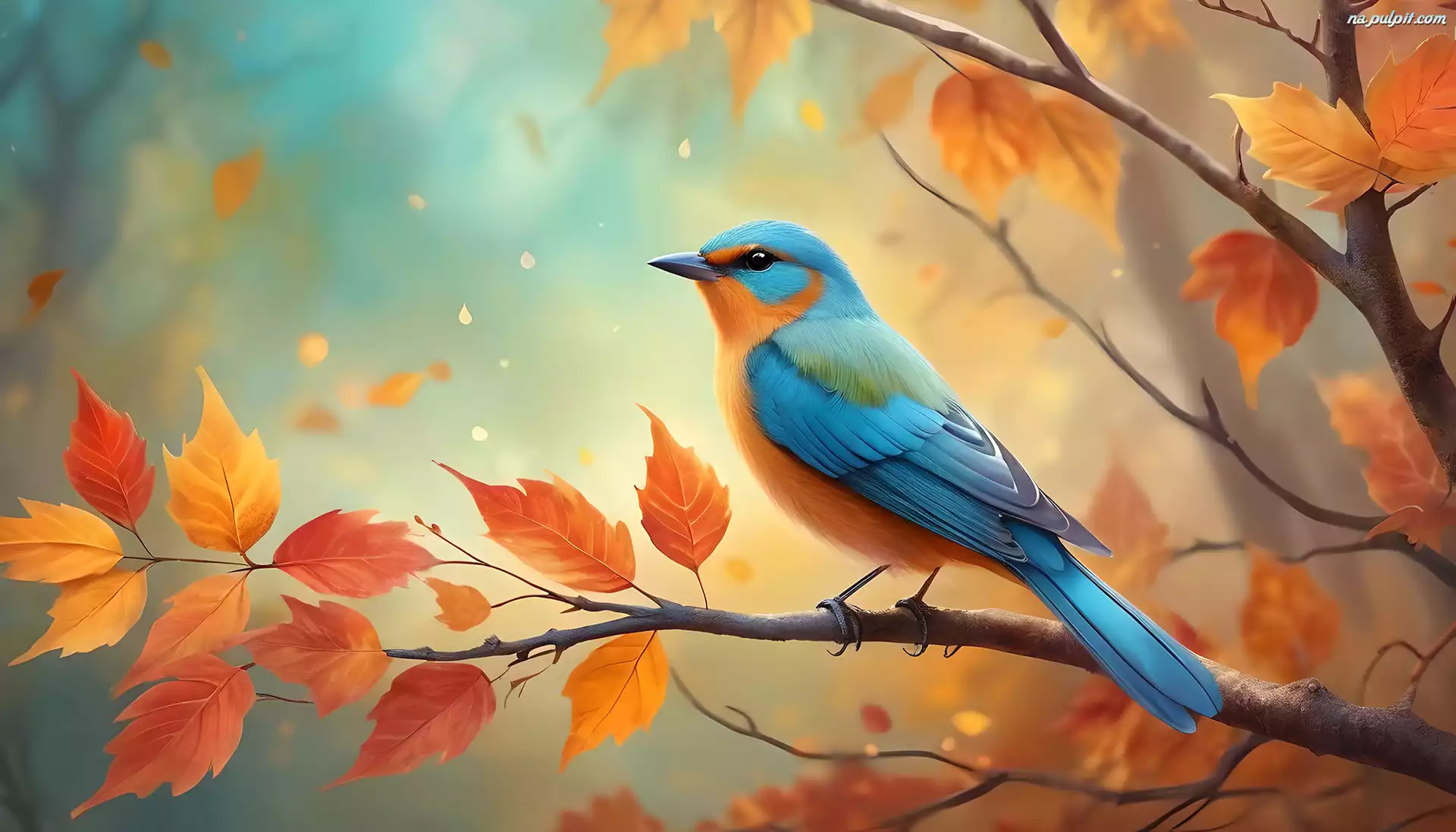 Liście, Kolorowy, Ptak, Grafika, Jesienne Na Pulpit