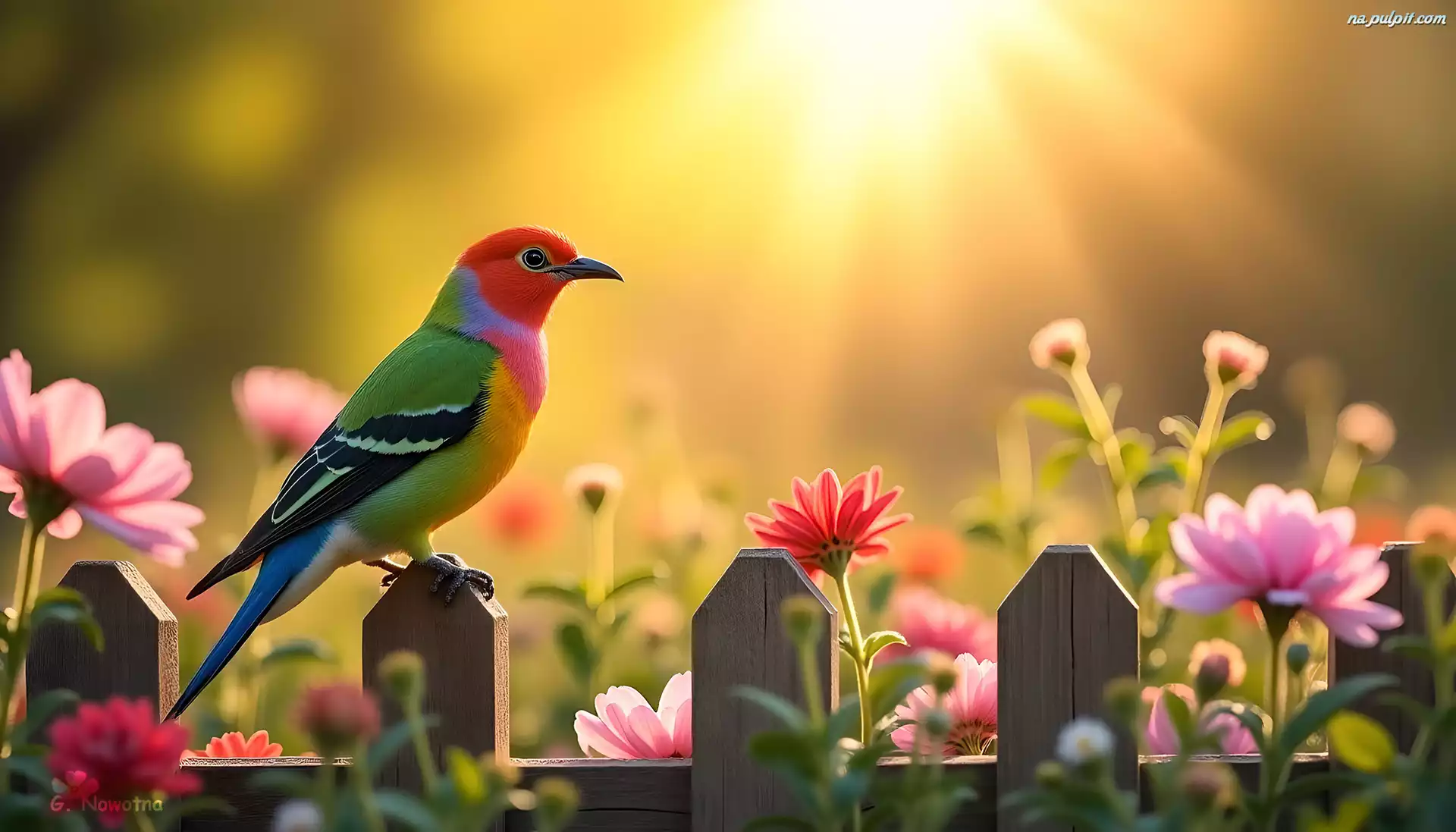 Kwiaty, Kolorowy, Ptak, Grafika, Płot Na Pulpit