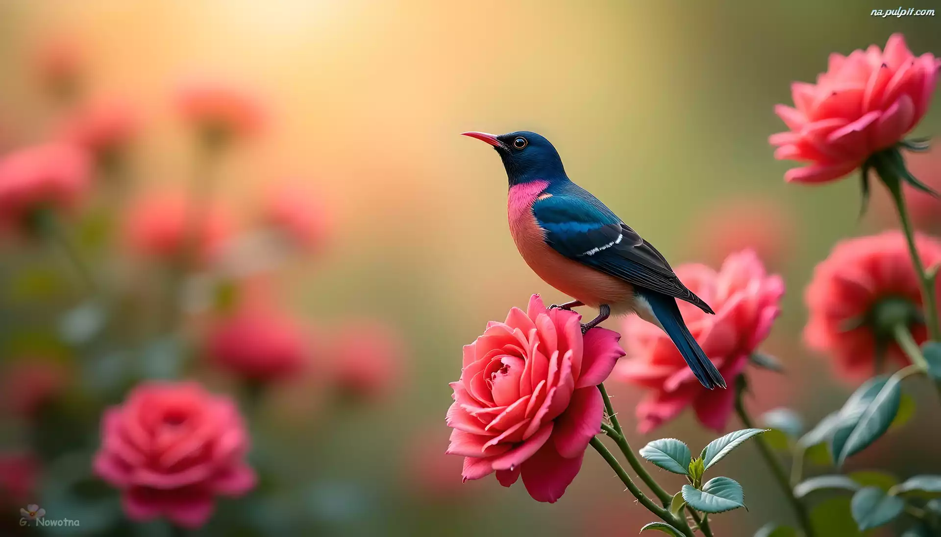 Kwiaty, Kolorowy, Ptak, Grafika, Róże Na Pulpit