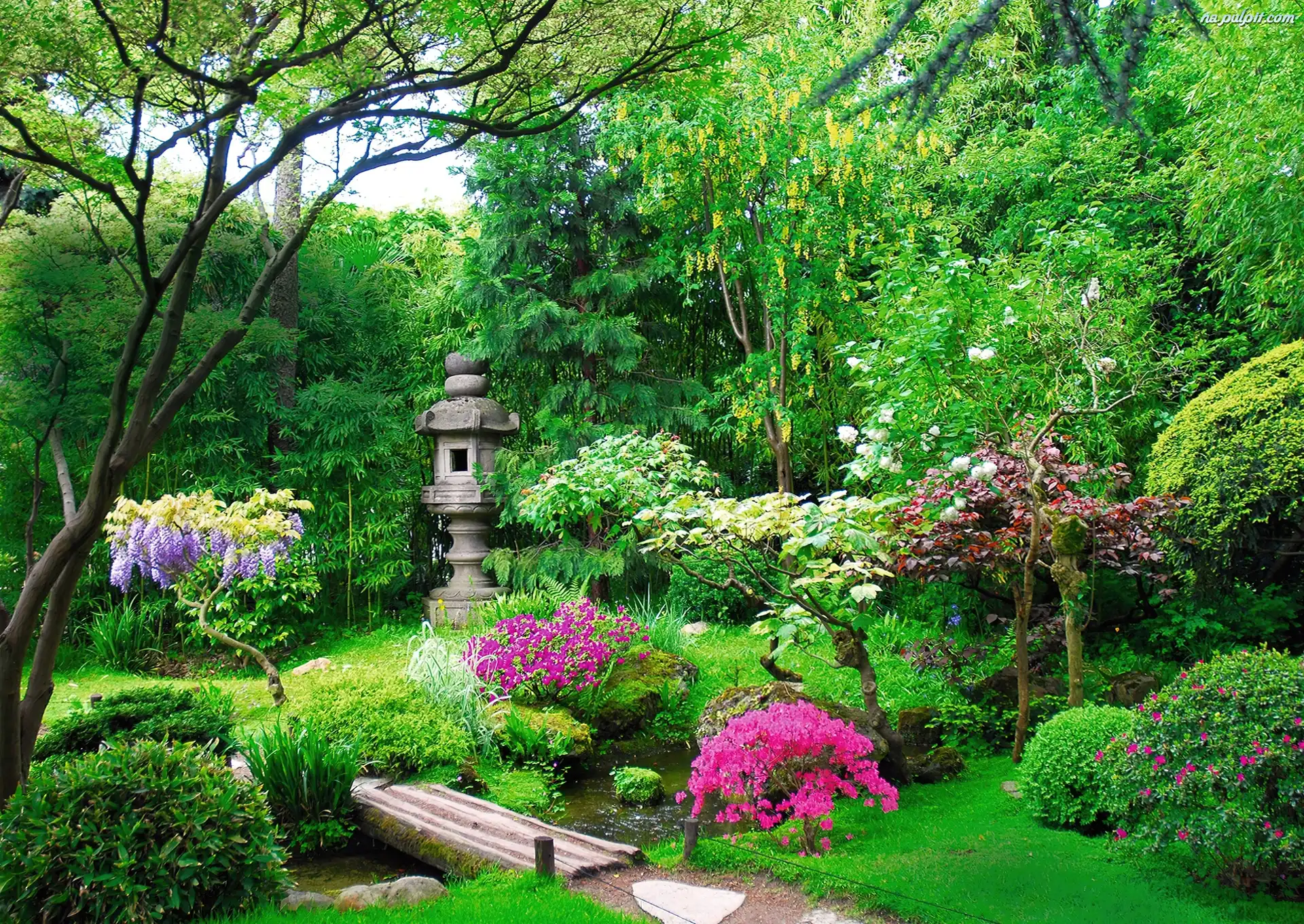 Kolumienka, Mostek, Japoński, Ogród, Strumyk Na Pulpit