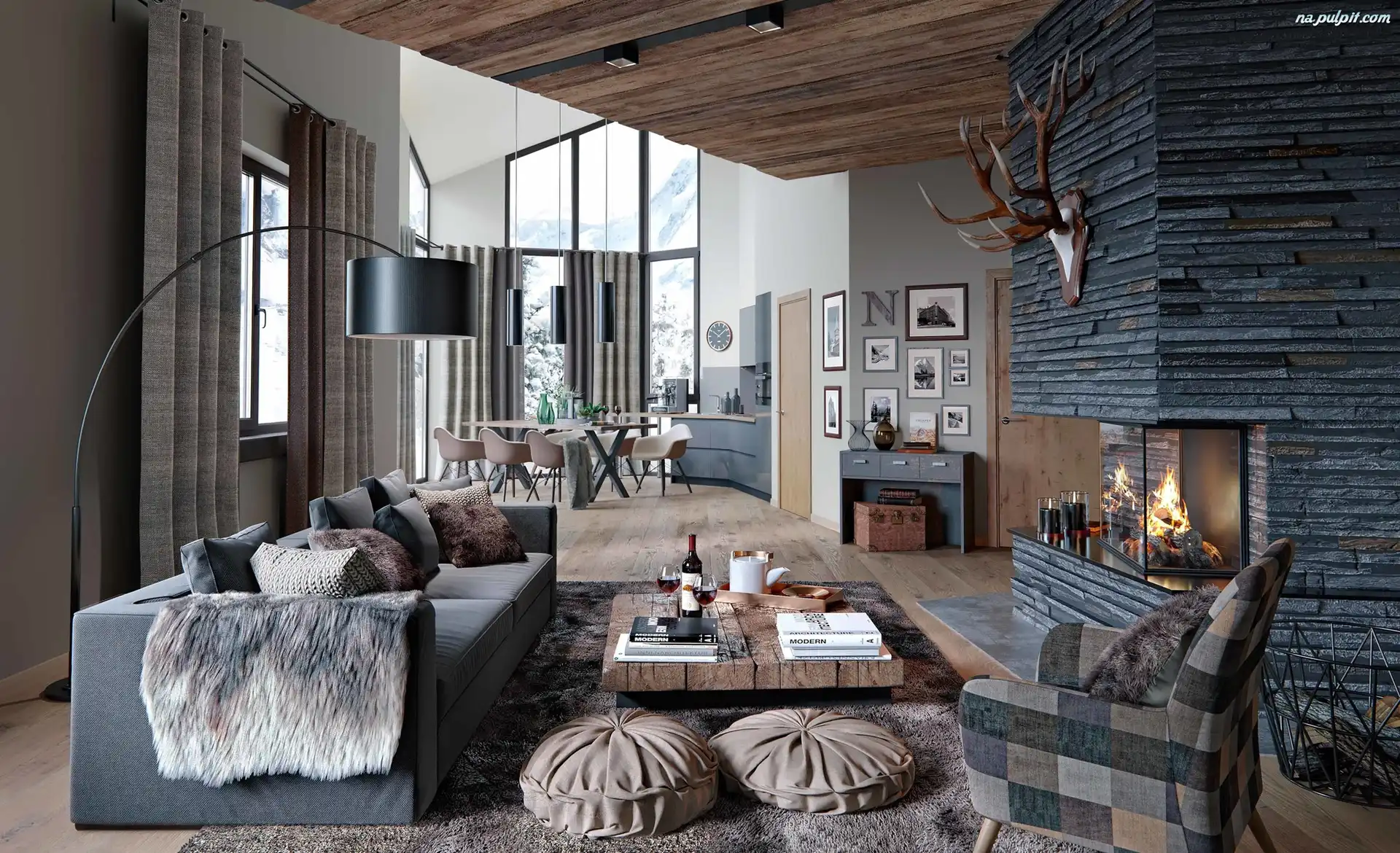 Stolik, Kominek, Niski, Kanapa, Fotel, Salon, Lampa Na Pulpit