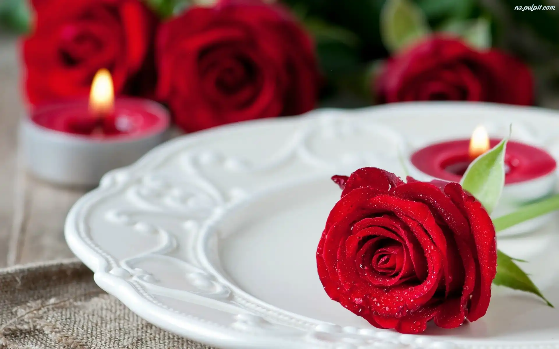 Kompozycja, Świece, Róże, Czerwone, Walentynki