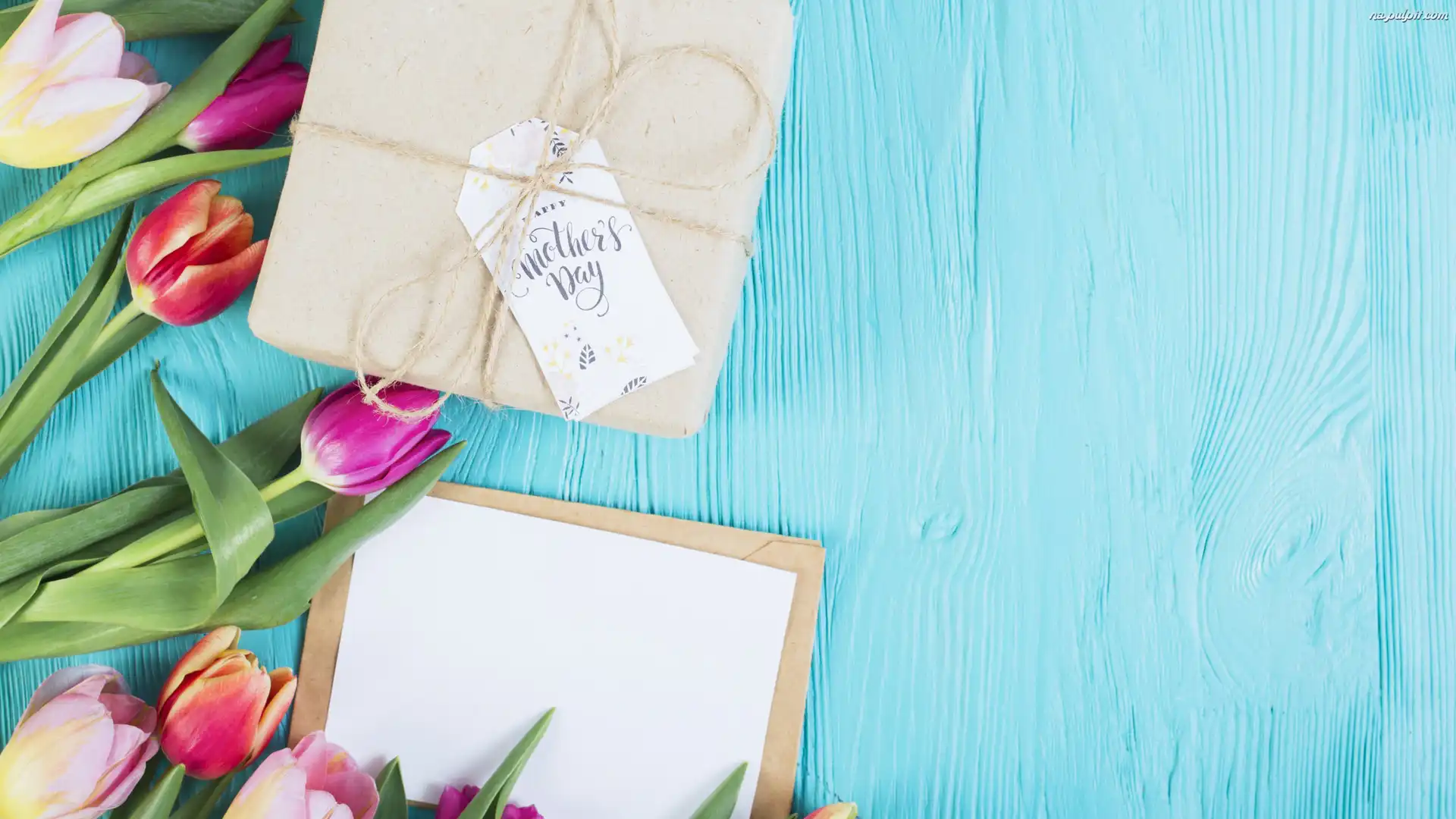 Kompozycja, Kartka, Prezent, Tulipany, Dzień Matki