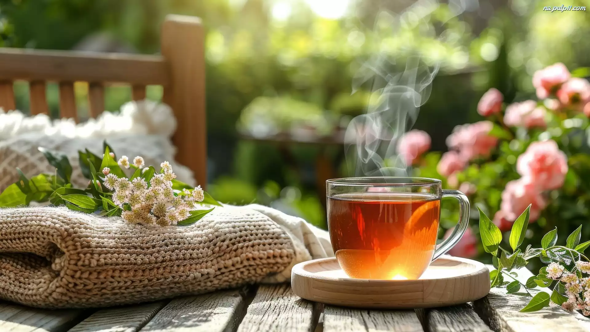 Szal, Kompozycja, Filiżanka, Kwiaty, Herbata