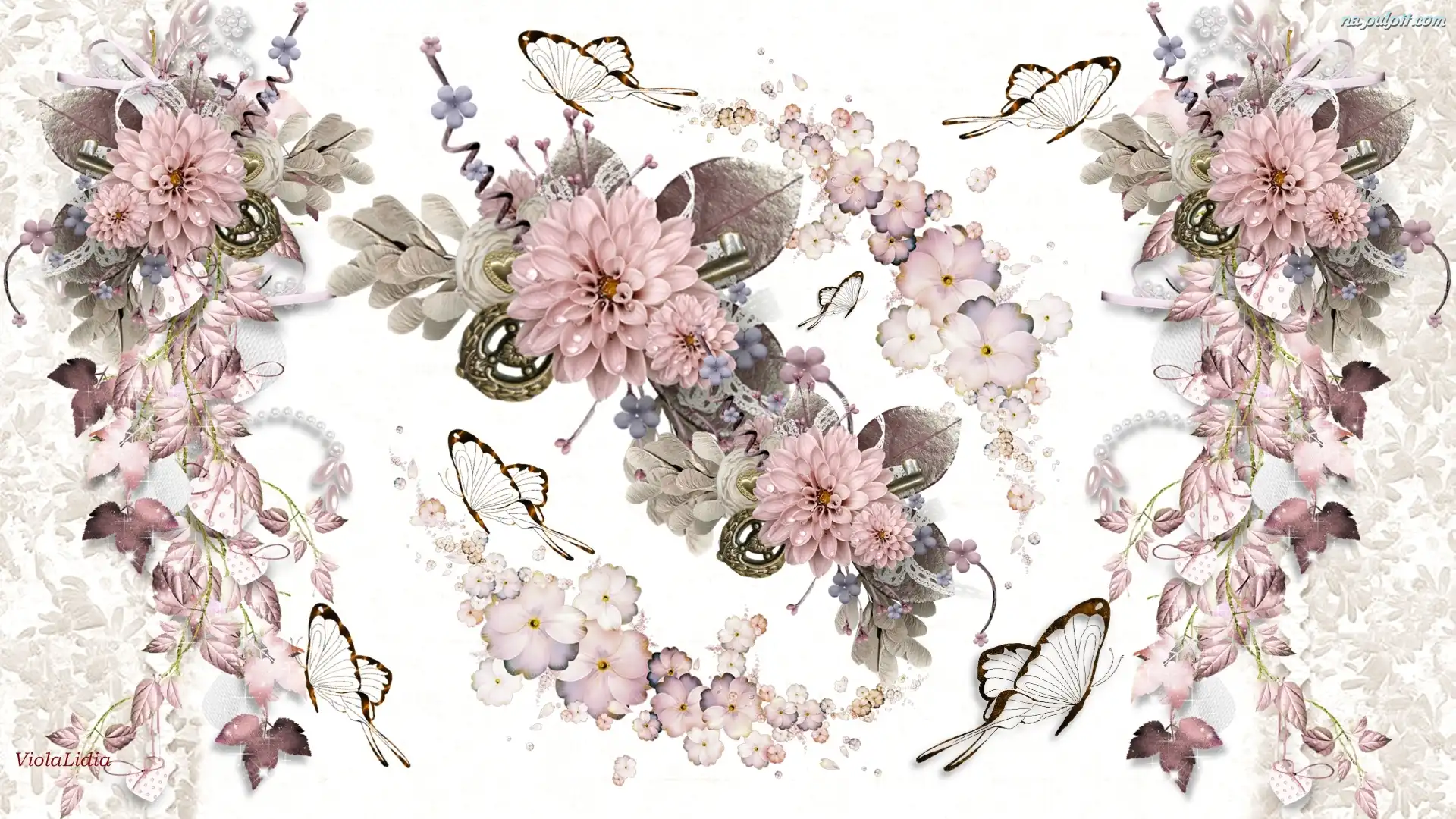 Kompozycja, Kwiaty, Grafika, Motyle Na Pulpit