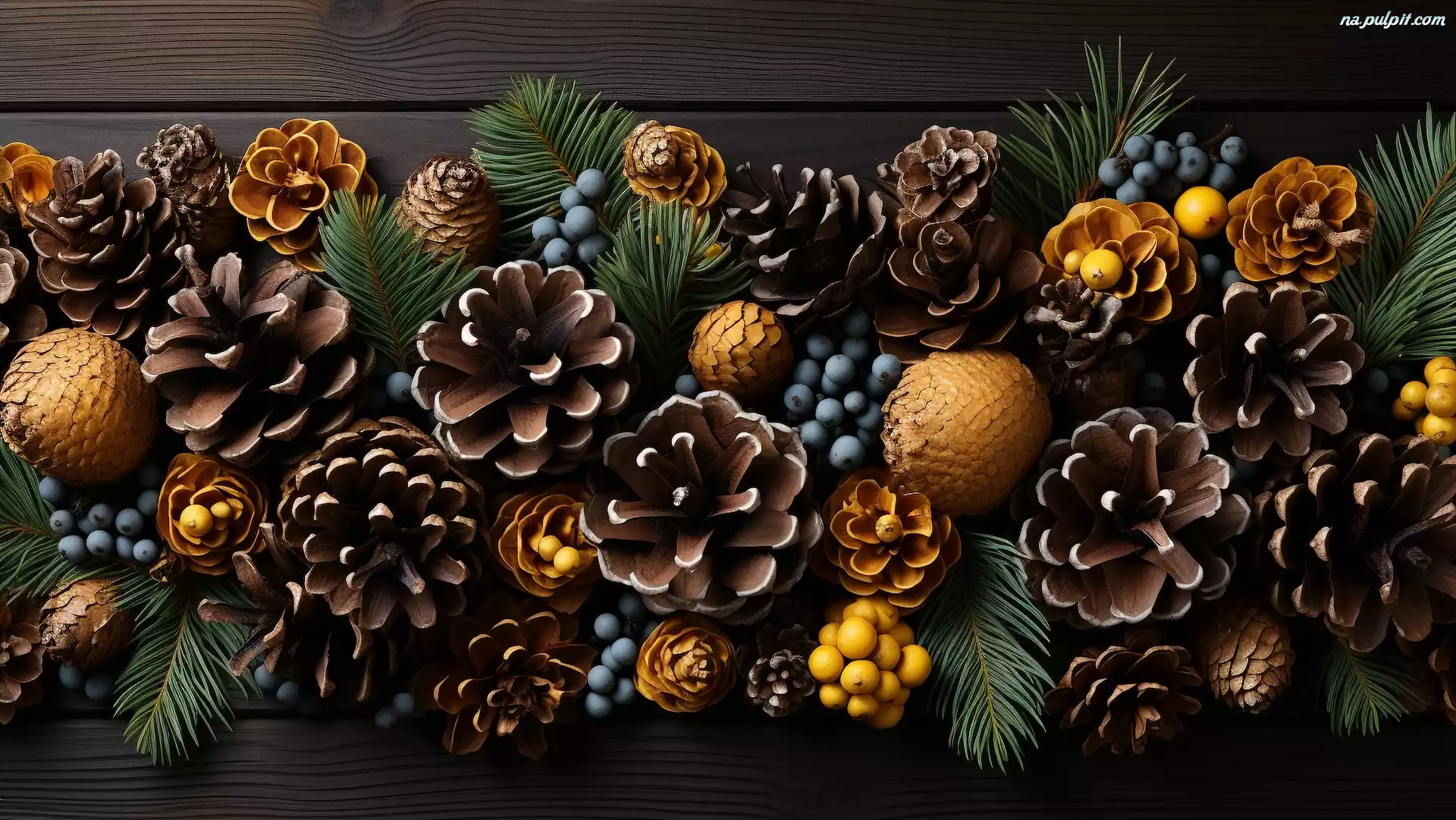 Liście, Kompozycja, Grafika, Jagody, Szyszki Na Pulpit