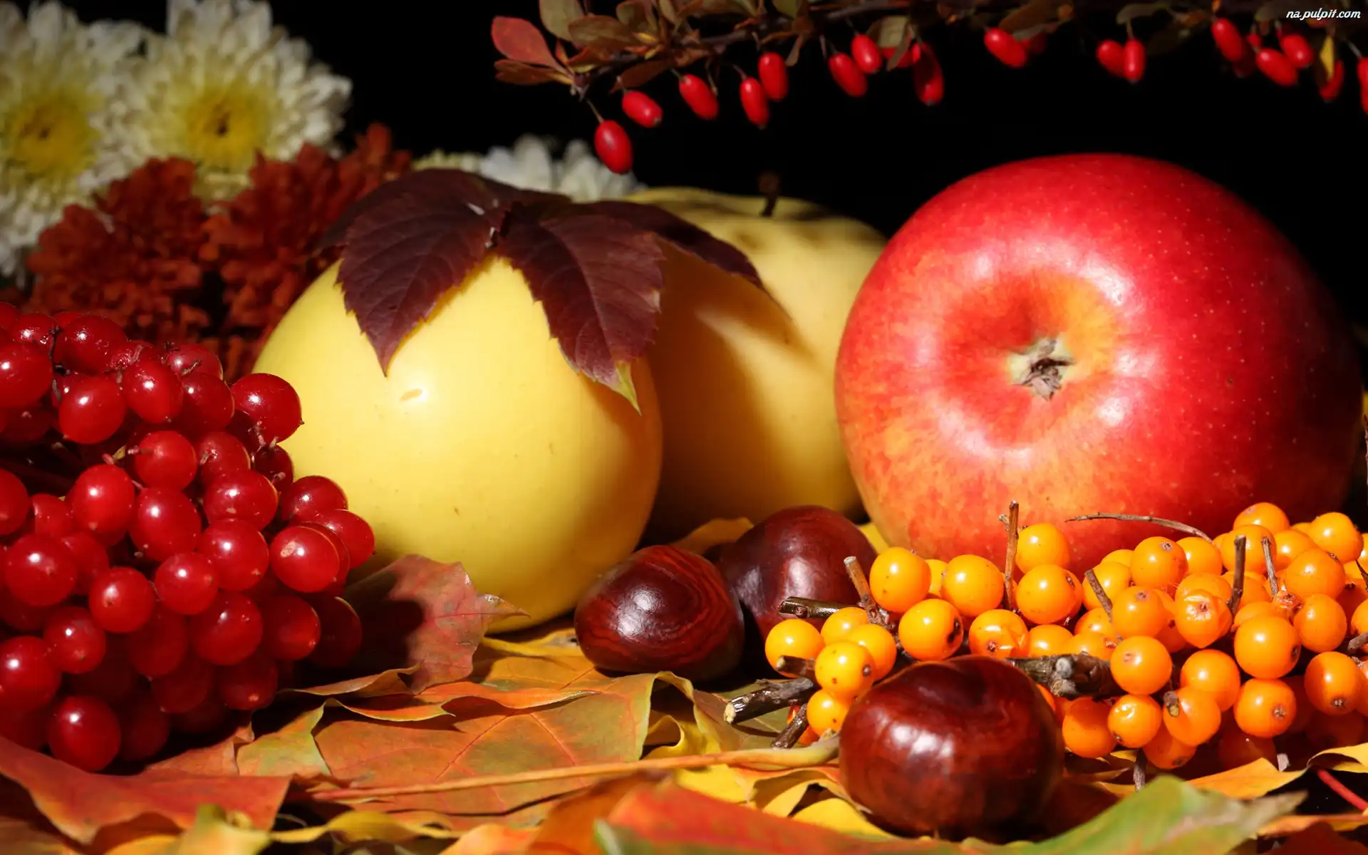 Kompozycja, Kasztany, Jabłka, Liście Na Pulpit
