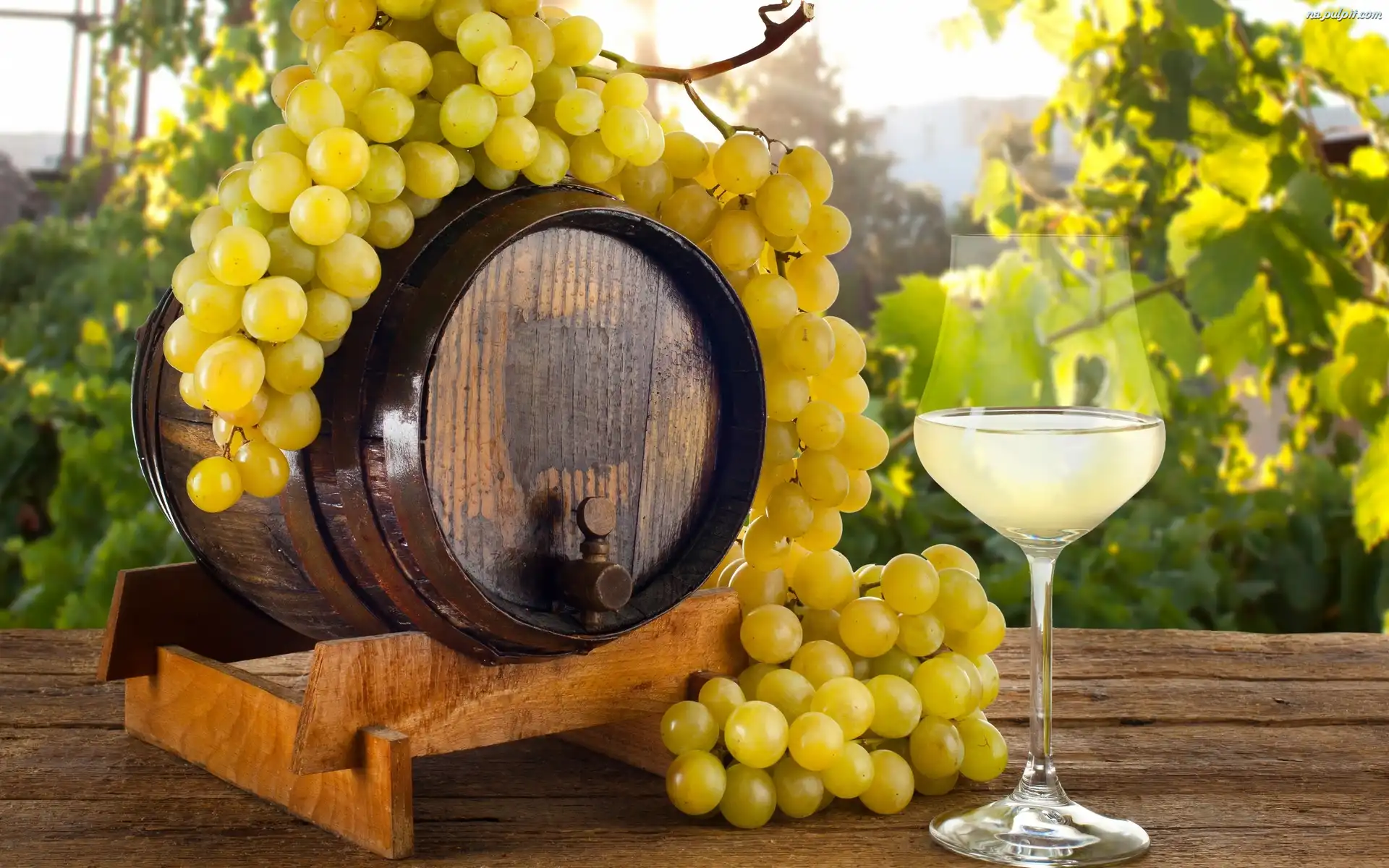 Kompozycja, Beczułka, Winogron, Kiść, Kieliszek