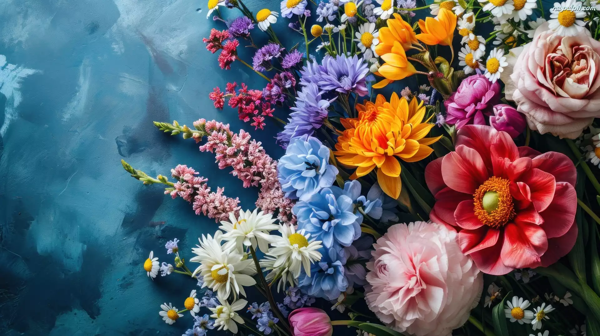 Niebieskie, Kompozycja, Kolorowe, Tło, Kwiaty Na Pulpit