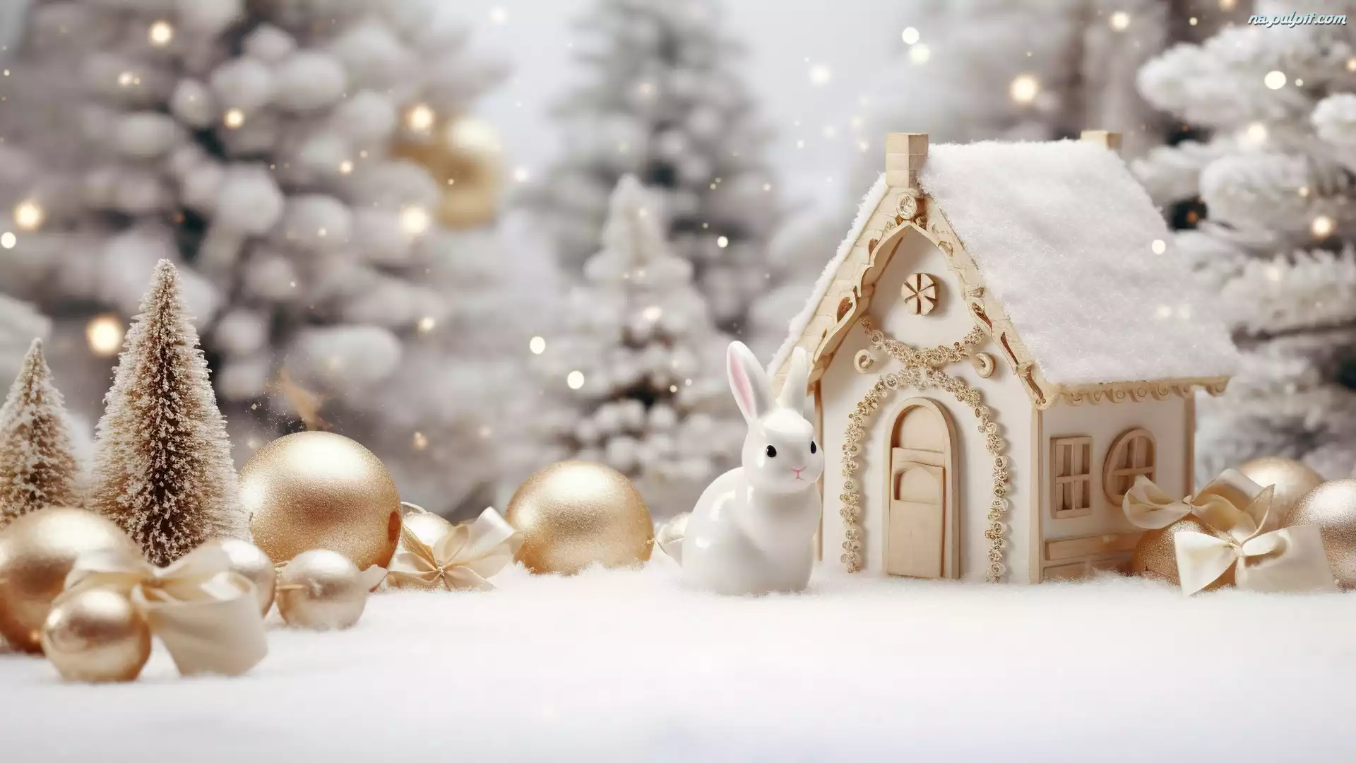 Grafika, Domek, Królik, Boże Narodzenie, Zima, Bombki, Kompozycja Na Pulpit