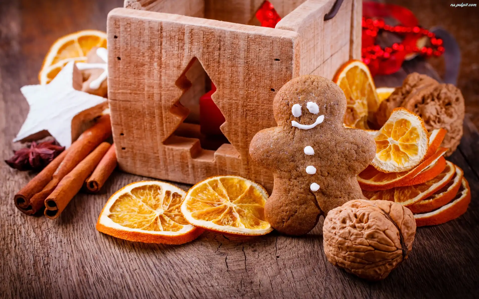 Kompozycja, Plasterki, Cynamon, Piernik, Pomarańczy