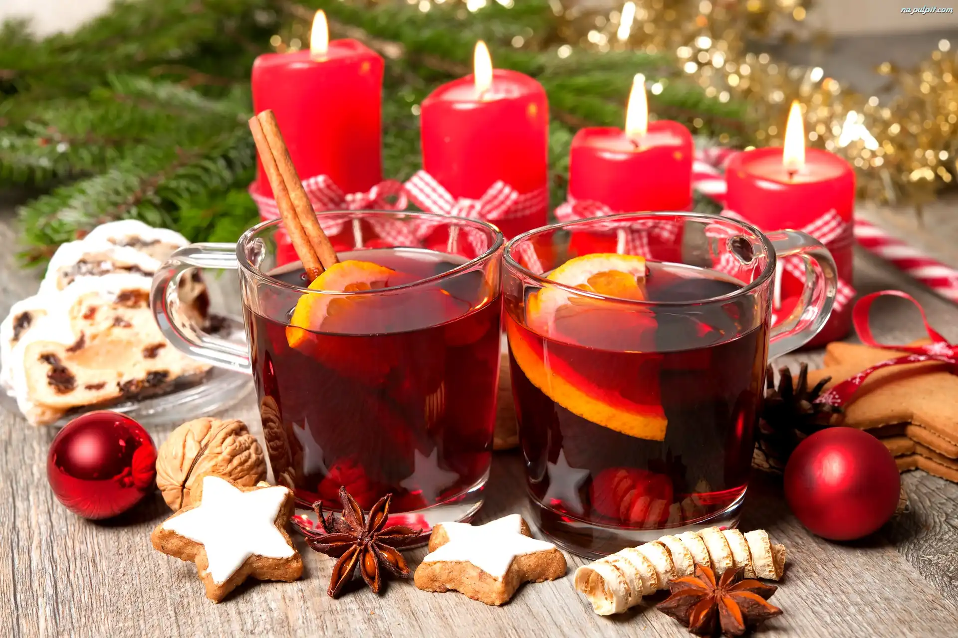 Kompozycja, Wino, Grzane, Szklanki, Åšwiece