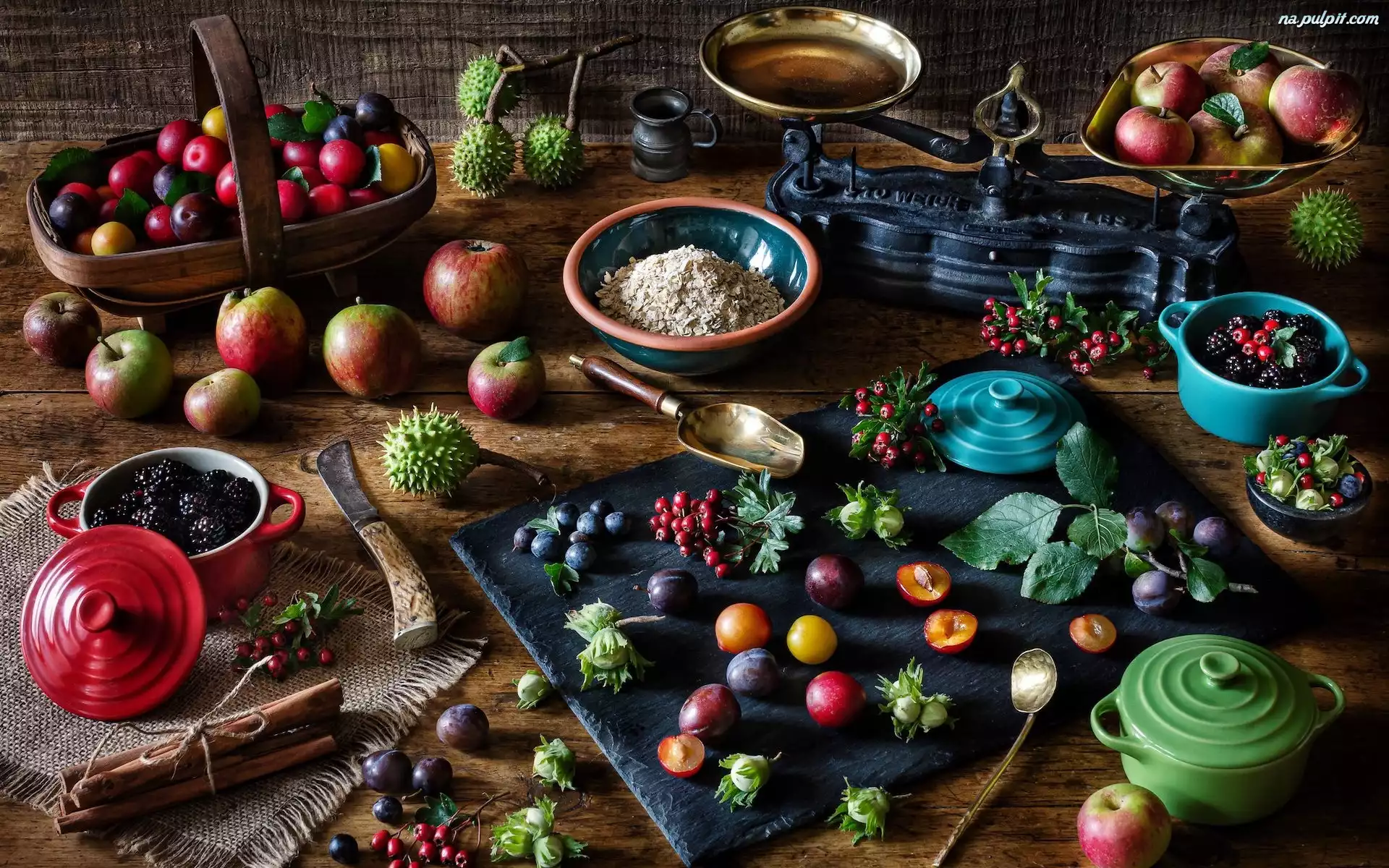 Śliwki, Kompozycja, Waga, Jabłka, Owoce Na Pulpit