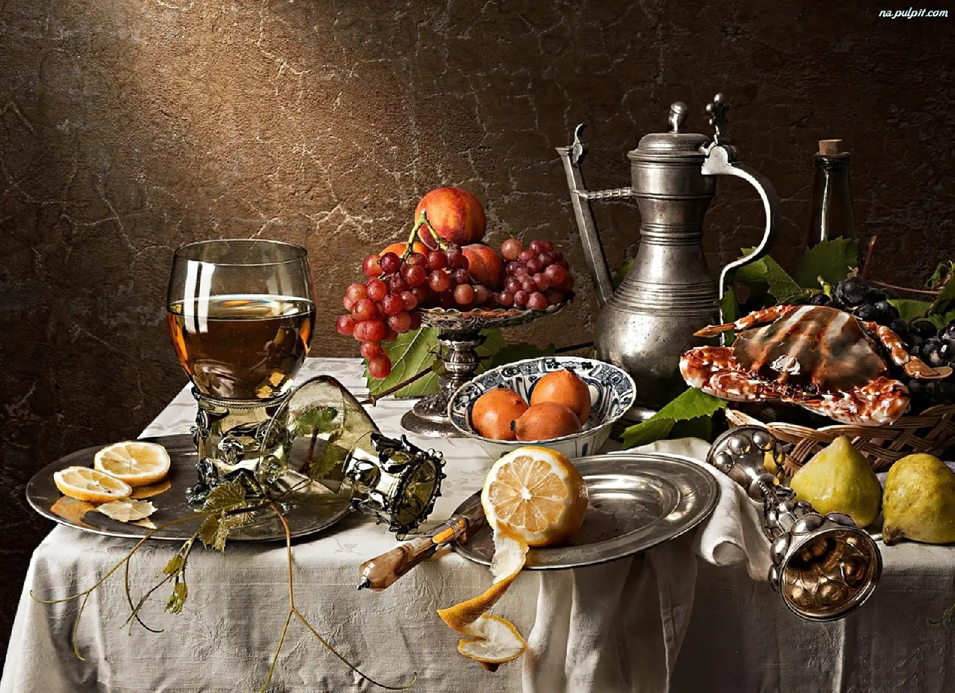 Kompozycja, Wino, Winogrona, Zastawa Na Pulpit