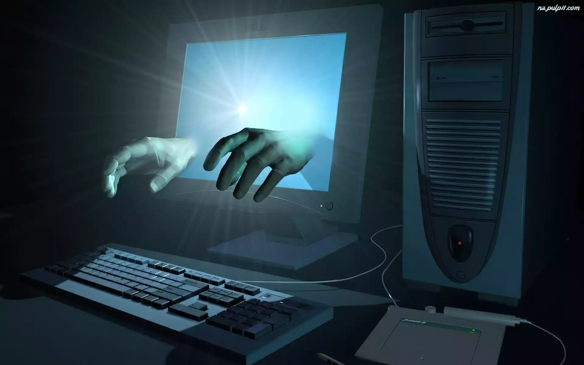 Dłonie, Komputer, Światło
