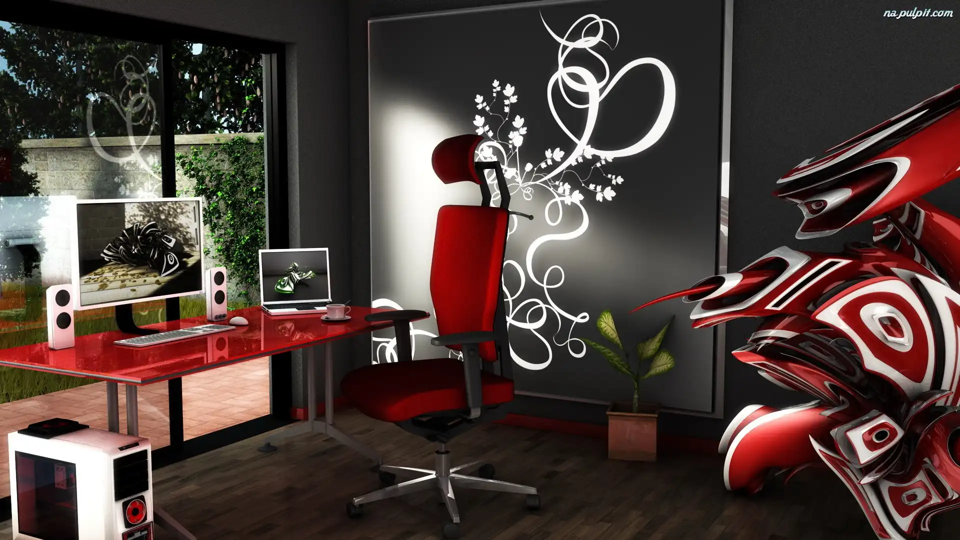 Komputer, Fotel, Wnętrze, Biurko